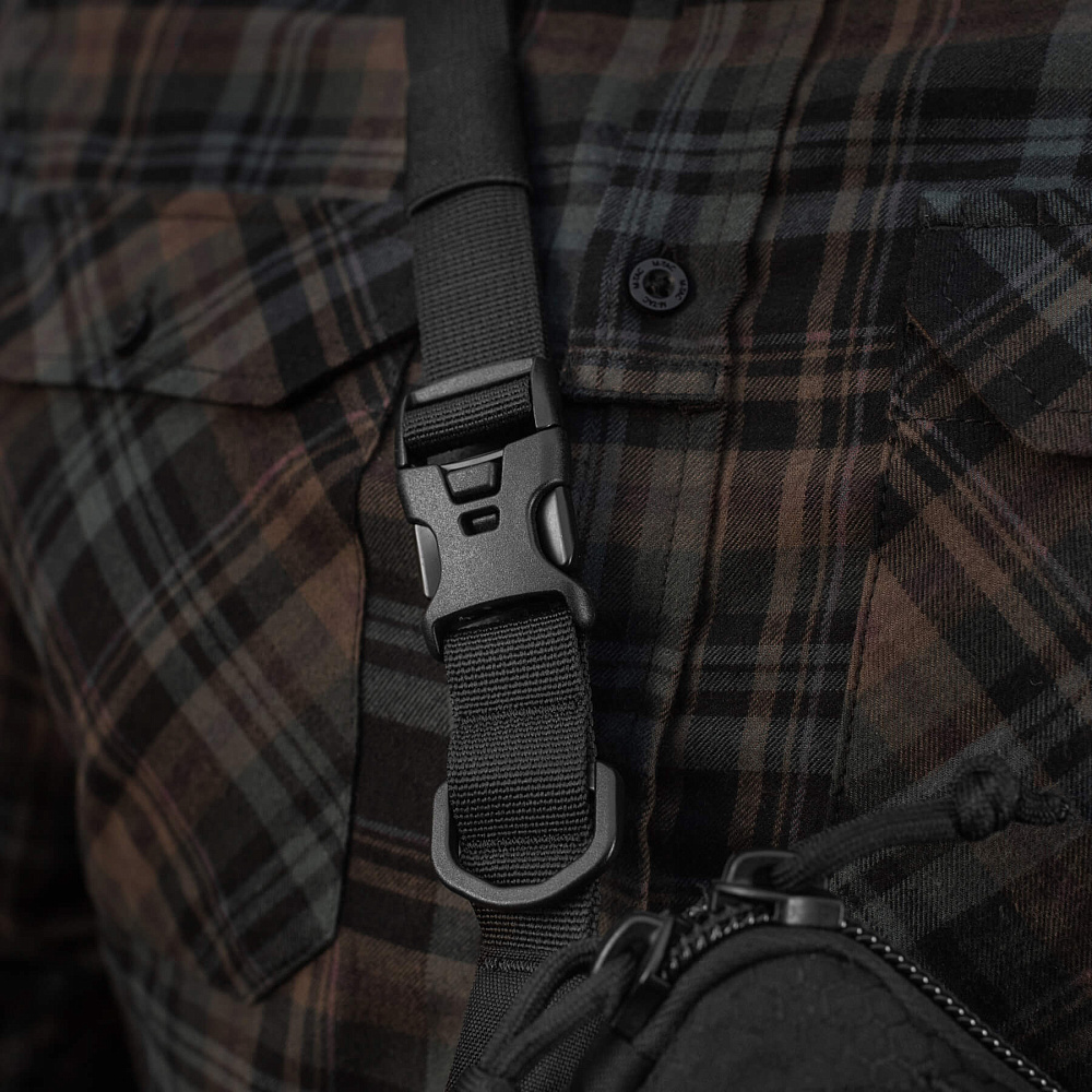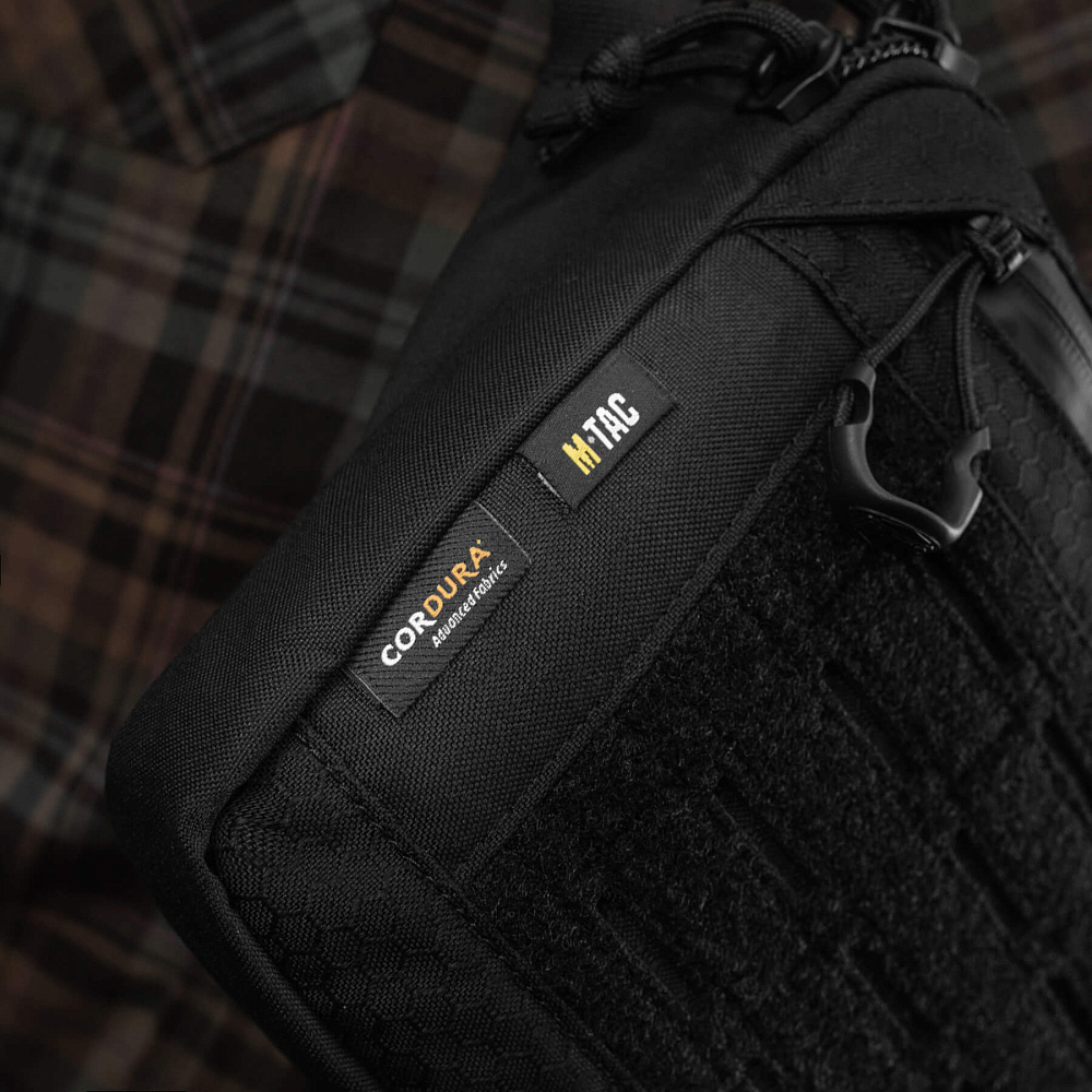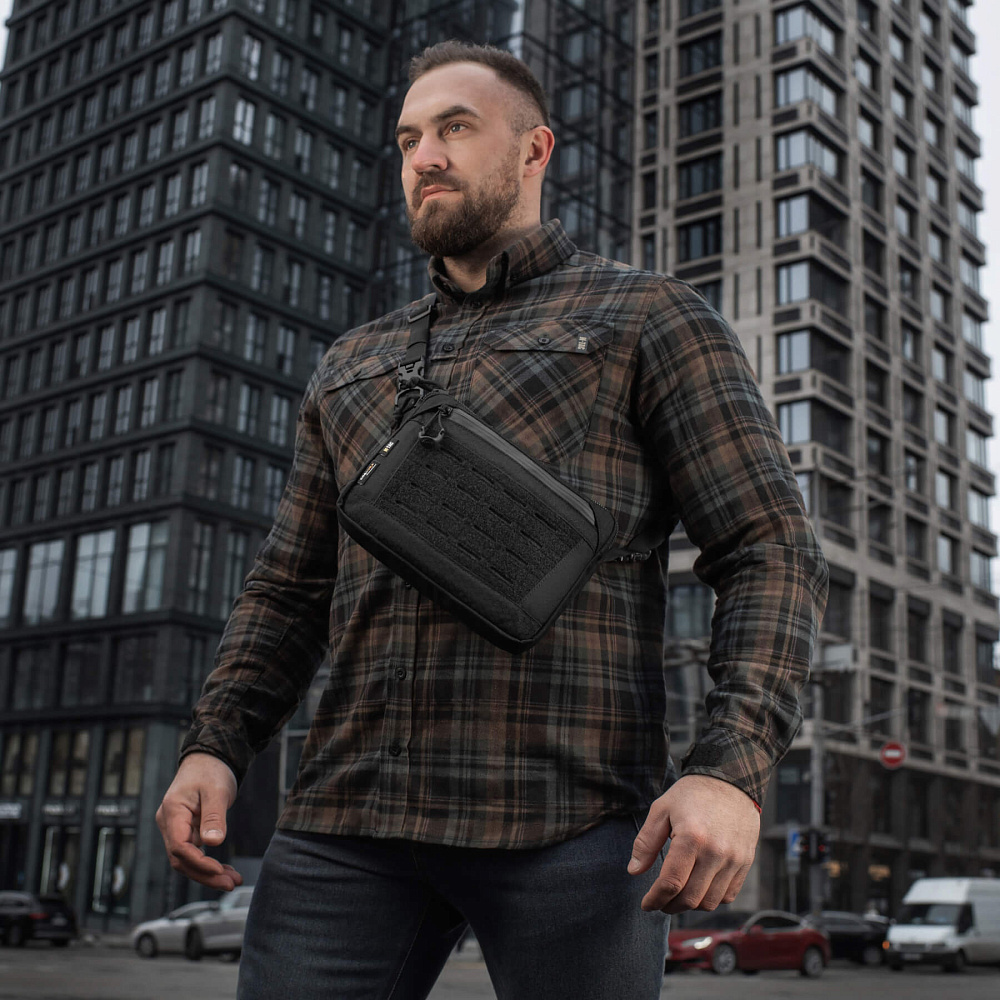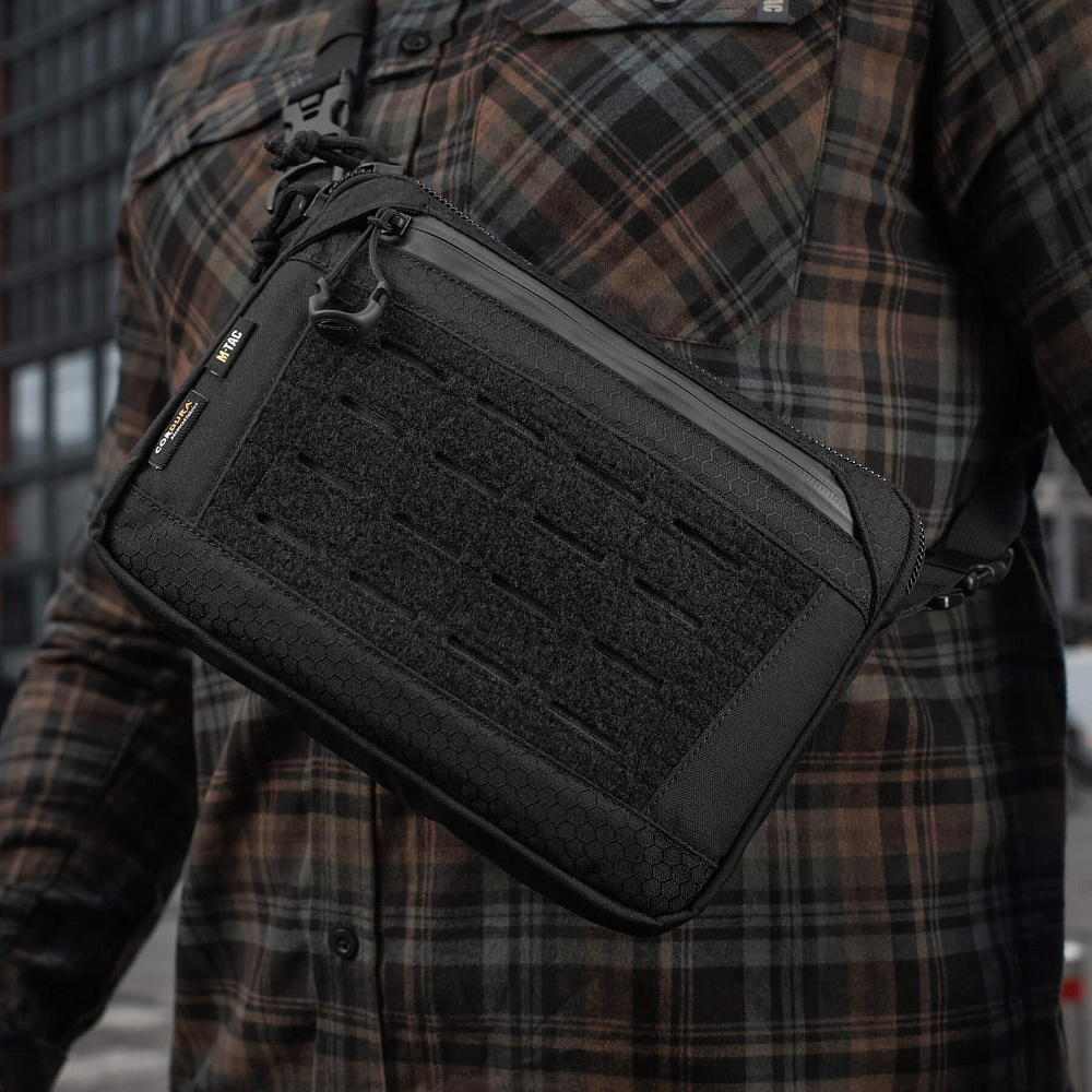 M-Tac сумка Admin Bag с липучкой оснащена регулируемым ремнем с фастексами быстрого снятия и D-кольцами для подвешивания дополнительного снаряжения. Ее задняя часть имеет небольшой скрытый карман, который отлично подойдет для переноски телефона или вещей, похожих по размеру.