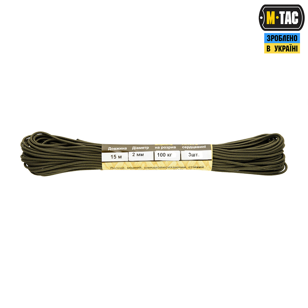 M-Tac паракорд 550 type III это нейлоновый шнур, состоящий из внешнего оплетки (большое количество переплетенных волокон) и сердечника (несколько нейлоновых нитей, переплетенных между собой), что обеспечивает его прочность и небольшой вес.