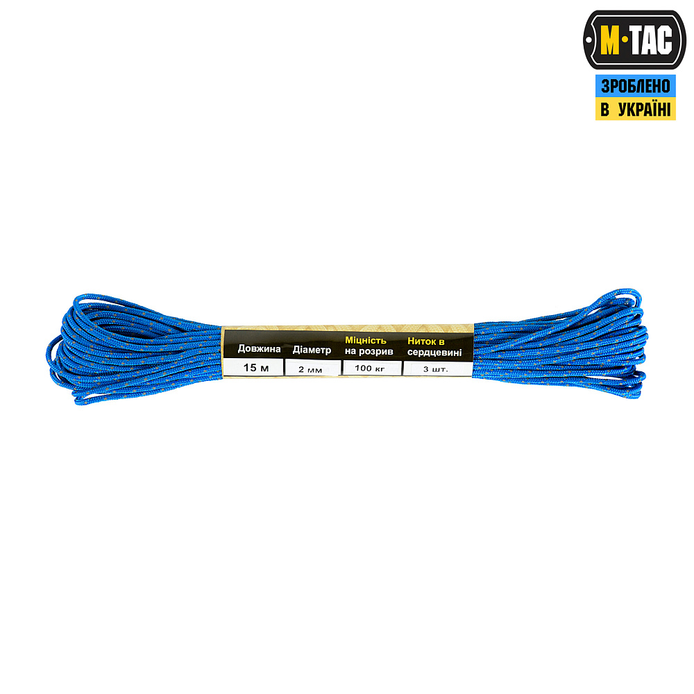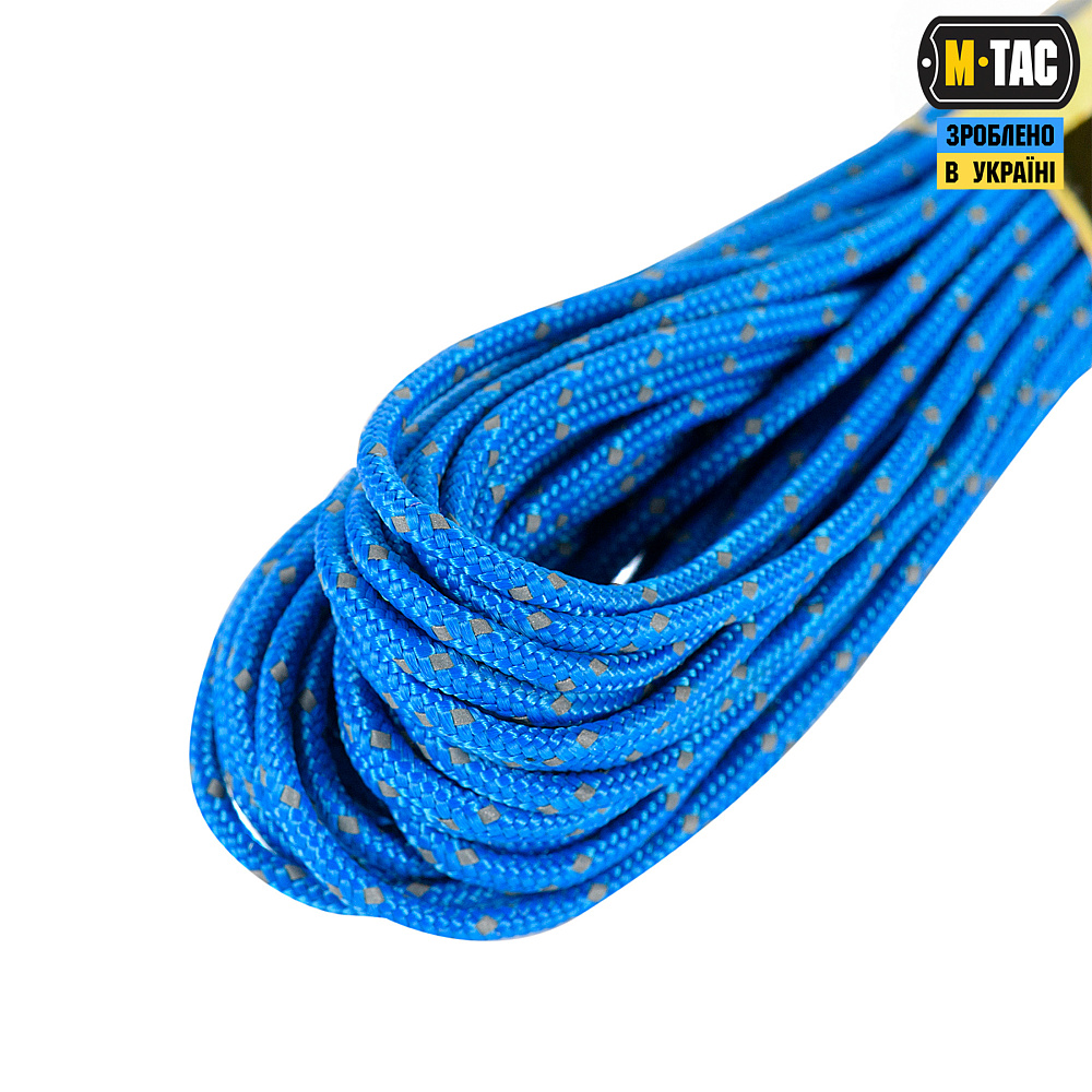 M-Tac паракорд Minicord Reflective – нейлоновый шнур, состоящий из внешней оплетки (большое количество переплетенных волокон) и сердечника (несколько нейлоновых нитей, соединенных между собой). Это обеспечивает его прочность и небольшой вес. Светоотражающие элементы позволяют с комфортом использовать шнур даже ночью.