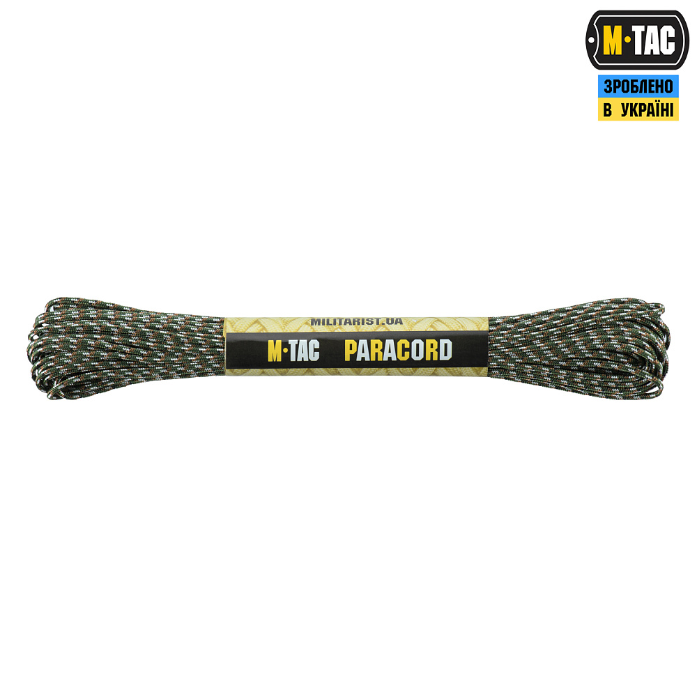 M-Tac паракорд 550 type III это нейлоновый шнур, состоящий из внешнего оплетки (большое количество переплетенных волокон) и сердечника (несколько нейлоновых нитей, переплетенных между собой), что обеспечивает его прочность и небольшой вес.