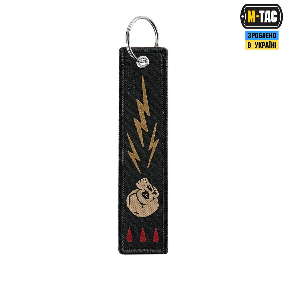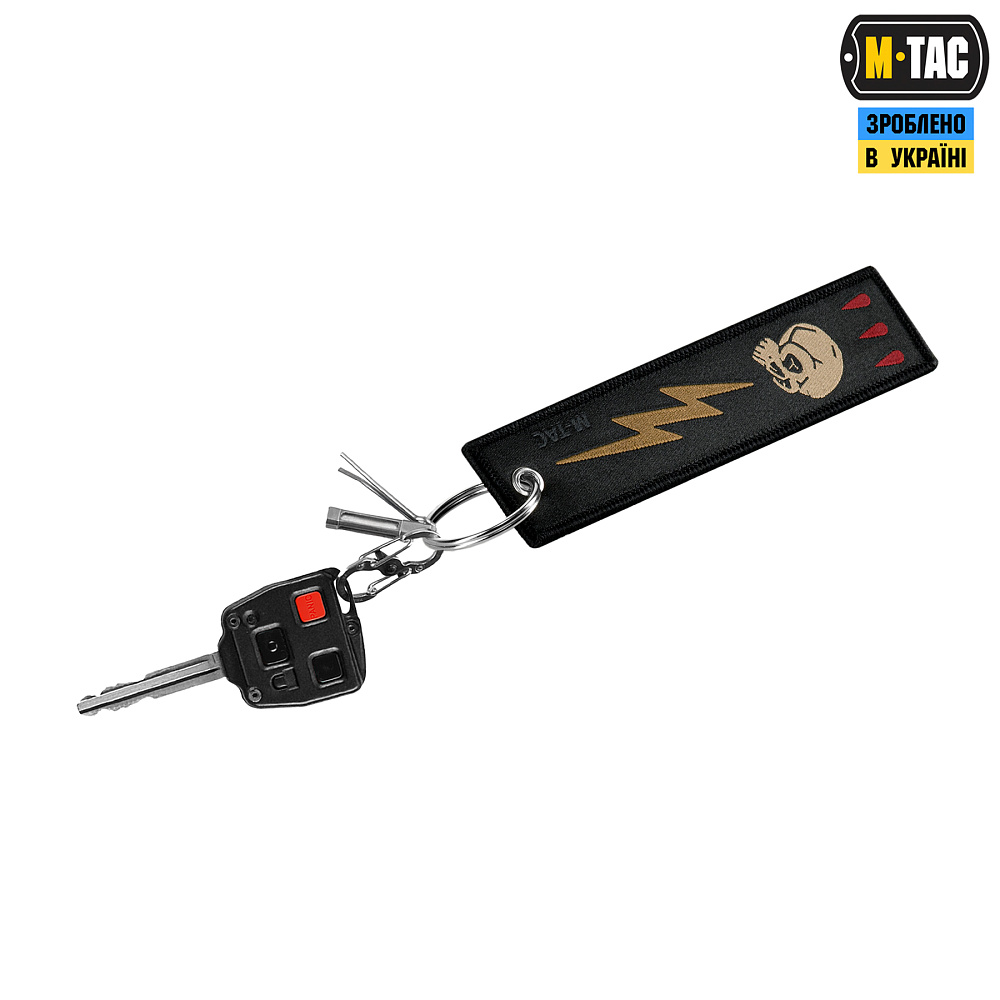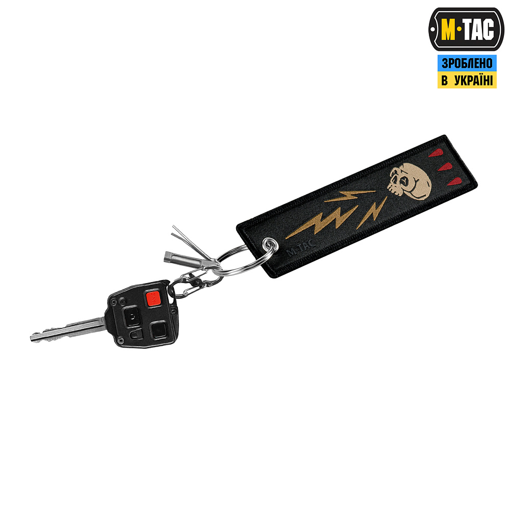 На М-Тас брелоке Молния изображен череп врага, который поражает молния. Он удобно крепится к ключам, сумке, рюкзаку и т.д. с помощью металлического кольца.