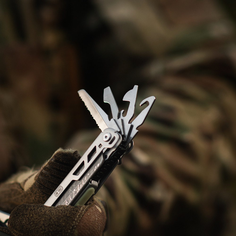 Мультитул изготовлен из сочетания нержавеющих сталей 440 и 420, которые обеспечивают прочность, долговечность и устойчивость к коррозии. Также, эти сплавы легко очищаются, не впитывают запахи и не влияют на вкус пищи.
