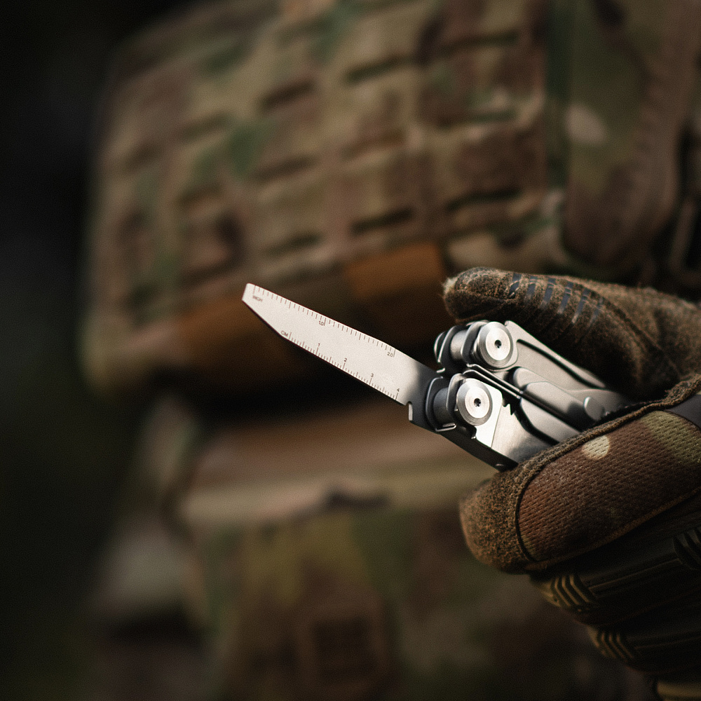 Мультитул комплектуется специальным чехлом, который с помощью стропы можно крепить к снаряжению. Также он хорошо помещается в сумке или рюкзаке, не занимая при этом много места.