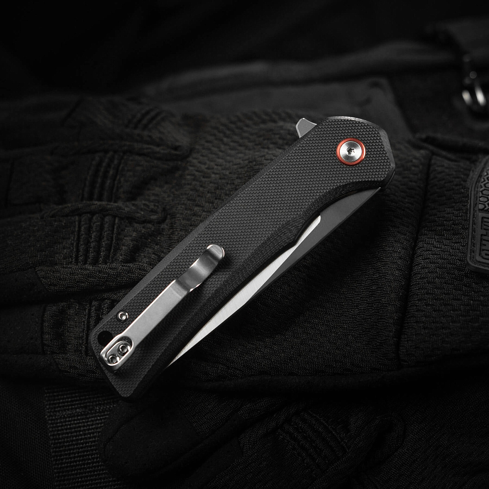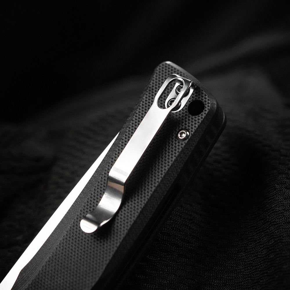В раскрытом состоянии лезвие ножа фиксируется с помощью пластины, которая является частью рукояти. Такой тип замка называется Liner Lock (с англ. – замок-фиксатор) и является одним из самых простых и надежных. На внутренней части рукояти расположена клипса для крепления ножа.