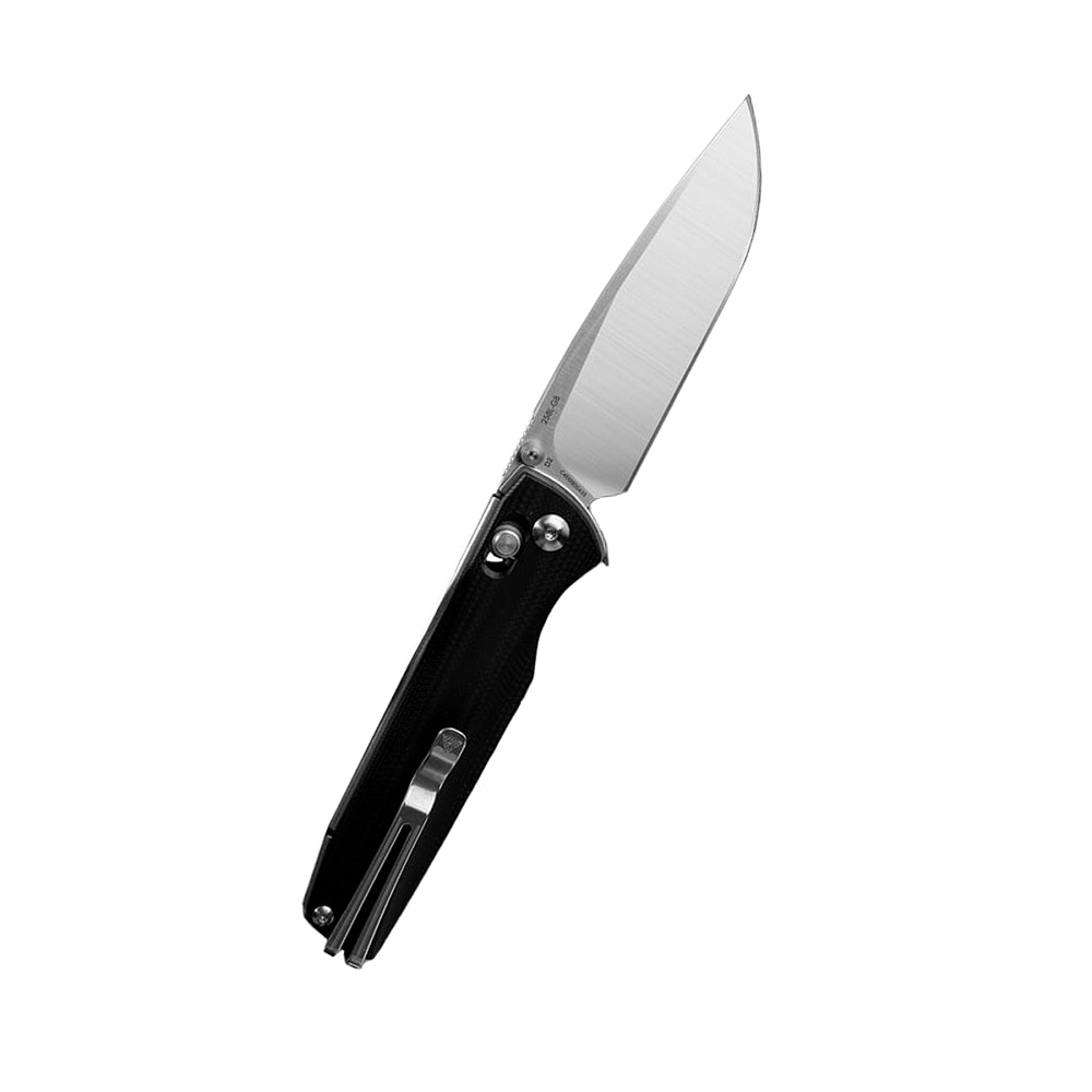 Открывать нож можно правой или левой рукой благодаря двустороннему шпеньку. Осевой узел собран на керамических подшипниках, благодаря чему ход клинка легкий и без заминок даже при частом цикле «открыть-закрыть».