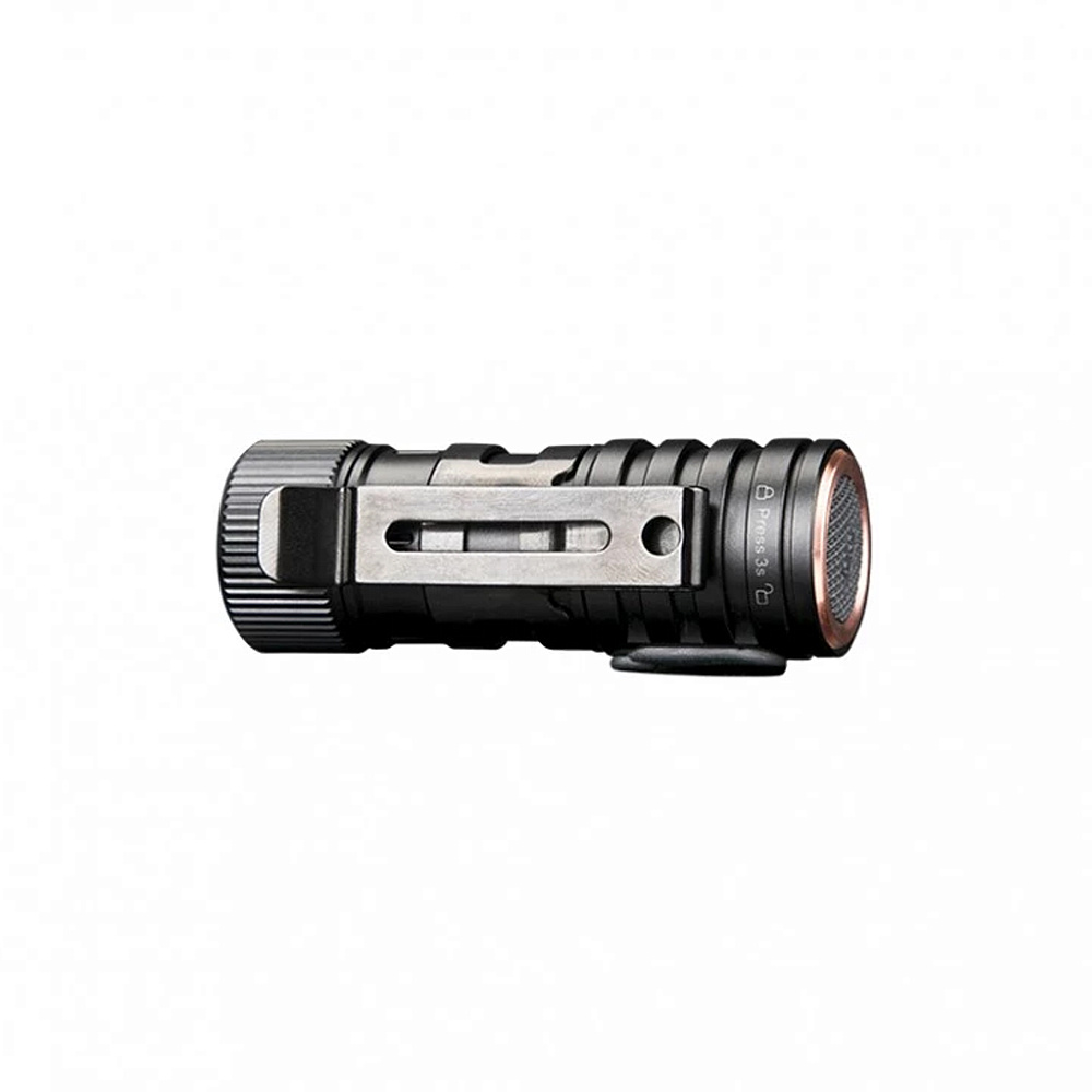 Чтобы заблокировать фонарь: при выключенном состоянии зажмите и подержите переключатель три секунды, прежде чем фонарь станет светить белым светом. После он четыре раза замигает красным, показывая, что блокировка активна.