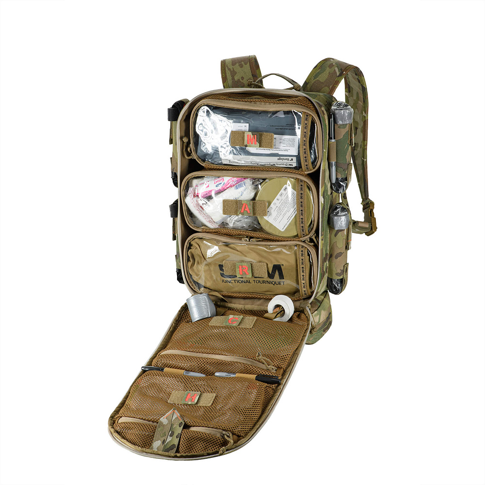 Нашивки разработаны специально для использования в M-Tac рюкзаке боевого медика. Они крепятся к велкро-панелям отсеков основного отделения, обозначая соответствующий этап алгоритма MARCH. Такая система упрощает организацию пространства и ускоряет поиск необходимого медицинского оборудования.