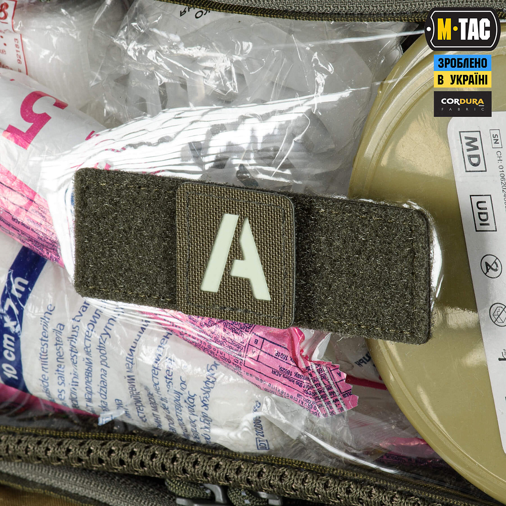 Нашивки разработаны специально для использования в M-Tac рюкзаке боевого медика. Они крепятся к велкро-панелям отсеков основного отделения, обозначая соответствующий этап алгоритма MARCH. Такая система упрощает организацию пространства и ускоряет поиск необходимого медицинского оборудования.