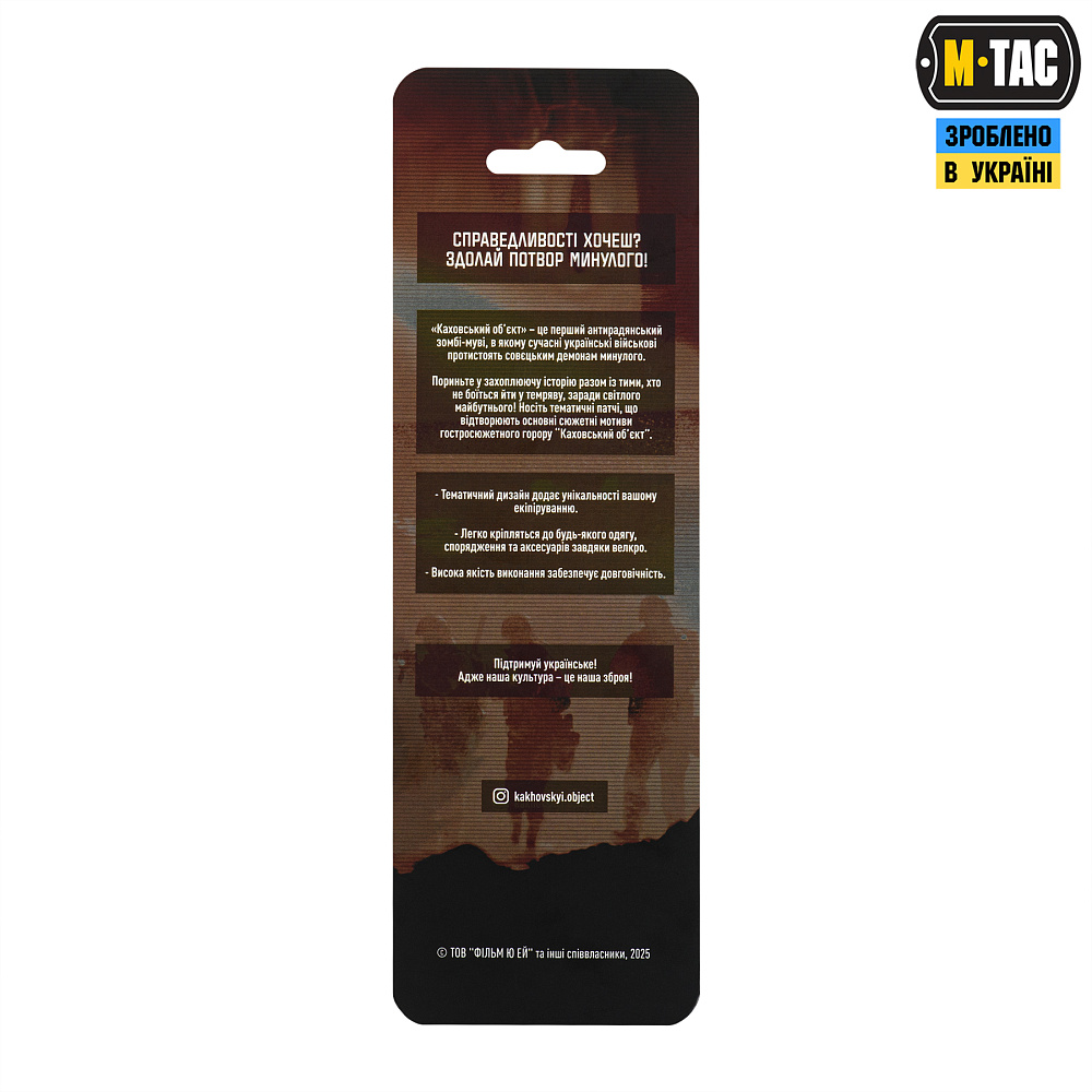 М-ТАС НАШИВКИ КВІТИ ЖАХУ “КАХОВСЬКИЙ ОБ’ЄКТ” – это коллаборация первого антисоветского зомби-фильма “Каховський об’єкт” и бренда М-Тас.