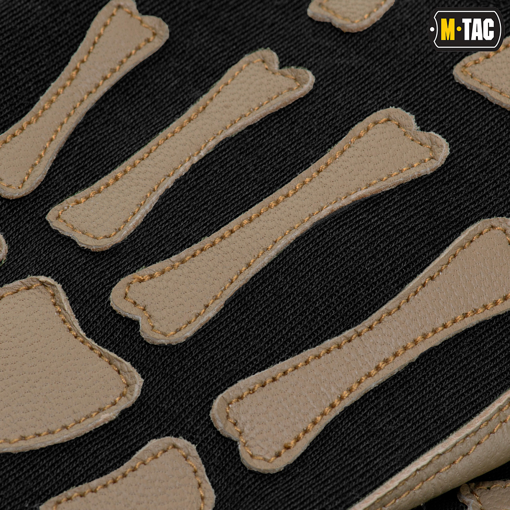Модель отличается продуманным эргономичным кроем, который обеспечивает комфортную посадку и плотное прилегание к руке. Перчатки позволяют уверенно взаимодействовать с элементами снаряжения, оружием или инструментами. Внешний вид также заслуживает внимания - благодаря контрастным вставкам на фалангах, стилизованные под «кости», модель имеет также выразительный визуальный характер.