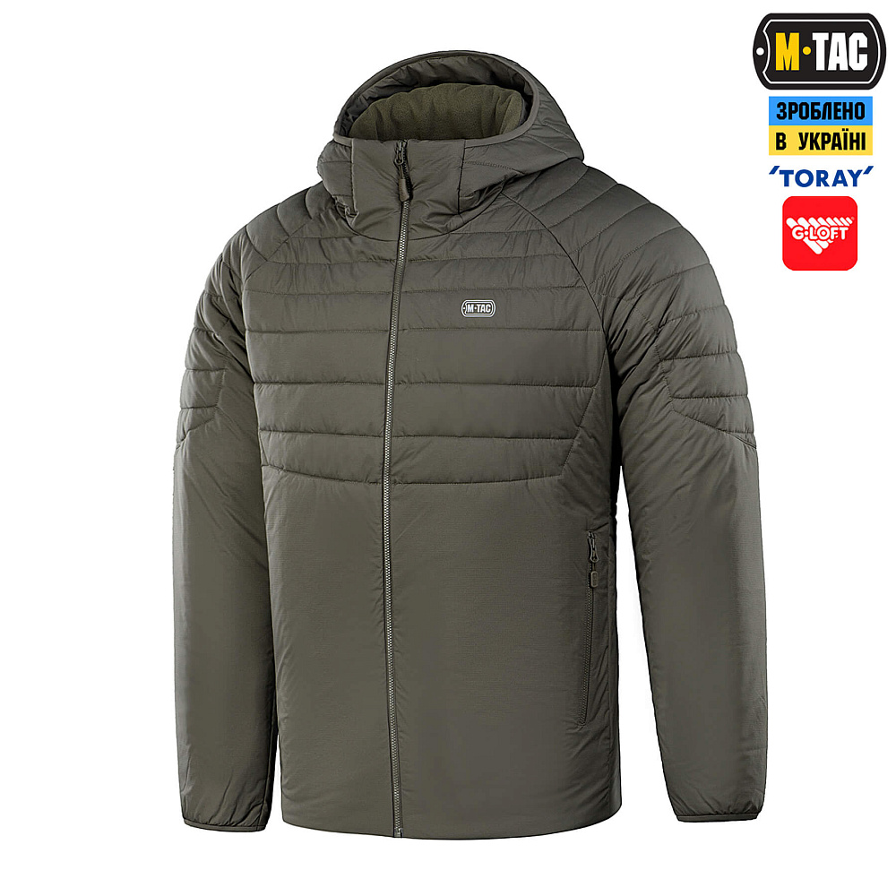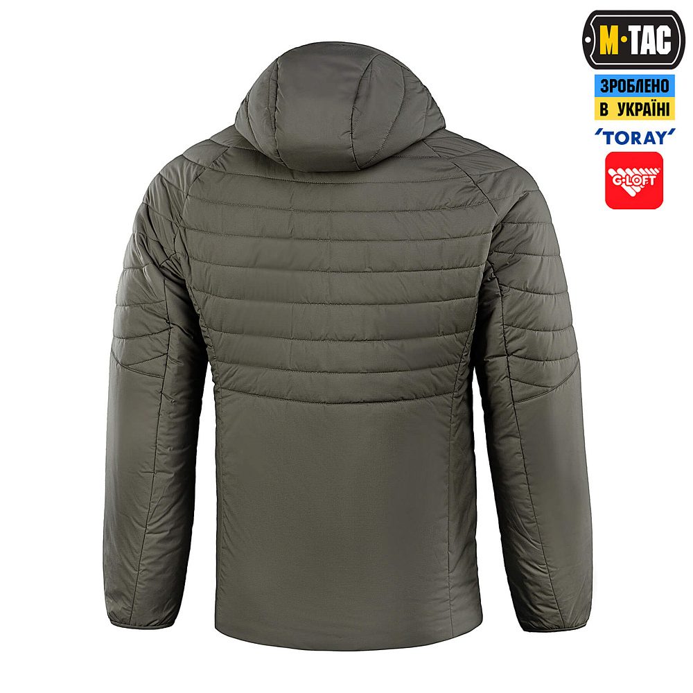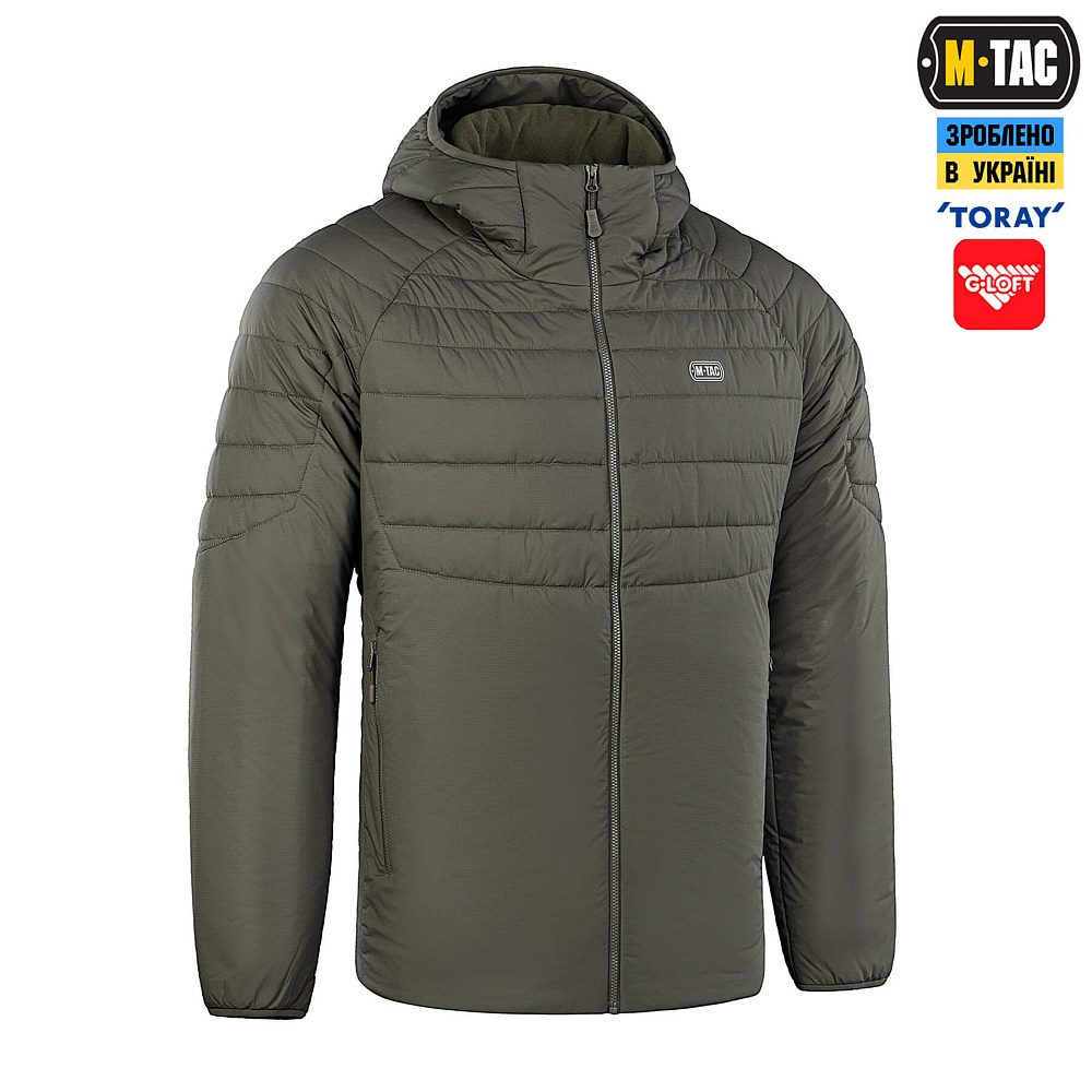 Пошита из легкой, дышащей нейлоновой ткани с водоотталкивающей пропиткой от японской компании Torаy. Куртка утеплена инновационным австрийским утеплителем G-Loft плотностью 100г/м2, что обладает высокими теплоизоляционными качествами и легко испаряет влагу при намокании. Также данный материал органично сочетает в себе мягкость пуха и прочность синтетического волокна.
