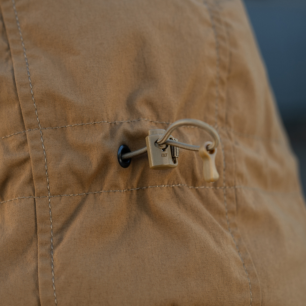 Низ куртки оборудован эластичным шнуром с фиксатором, благодаря которому легко регулировать посадку в соответствии с собственными потребностями.