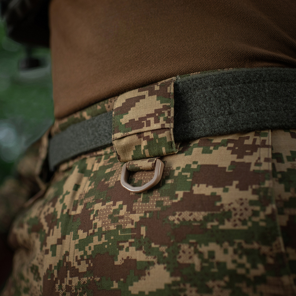 M-Tac штани Aggressor Gen.II NGU Camo мають велику кількість кишень: всього їх сім. Оснащені еластичним "тунельним" поясом зі зручним регулюванням посадки, розрахованим на носіння ременем шириною до 6 сантиметрів. Також, на поясі розташовані D-кільця, призначені для розміщення додаткового устаткування.
