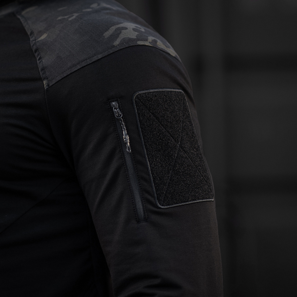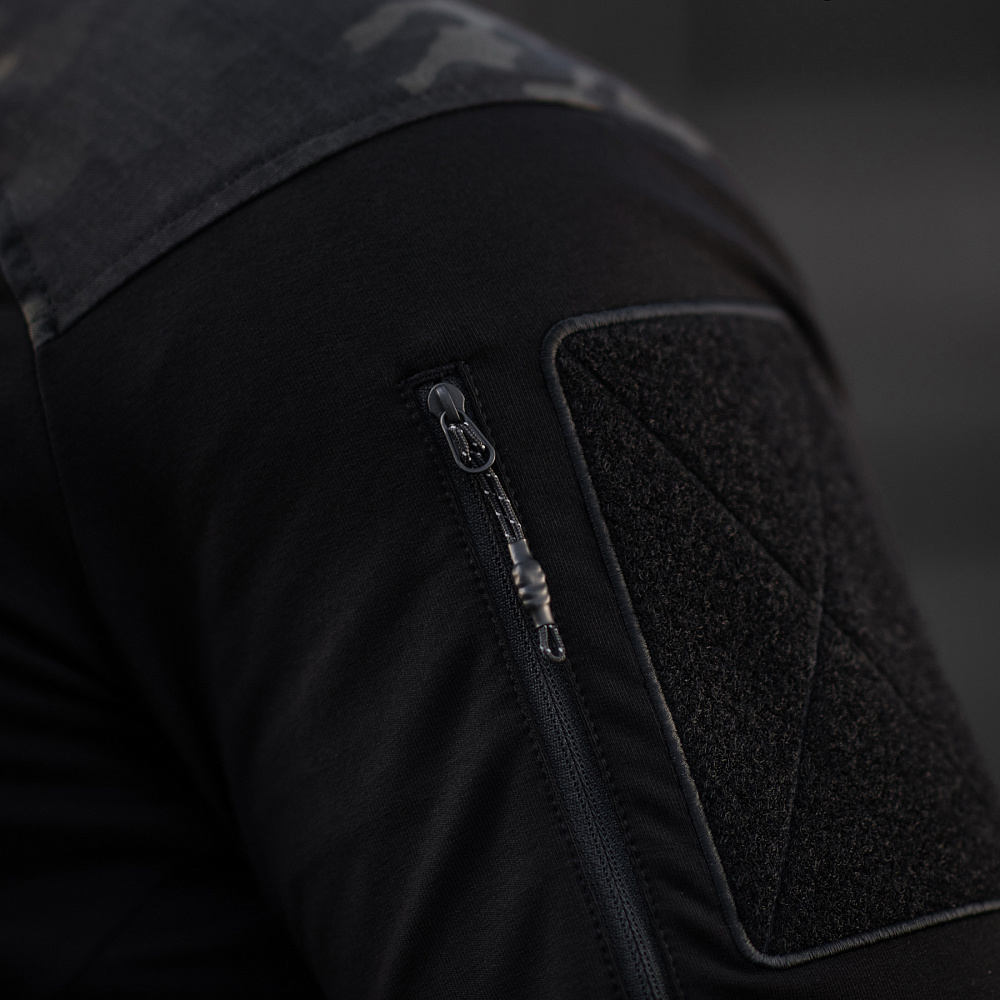 На груди М-Тас кофти Hoodie Combat Black Edition Black Multicam размещена вышивка с логотипом бренда. На рукавах размещены вместительные карманы на застежках-молниях, поверх которых нашиты велкро-панели для размещения идентификаторов и патчей.