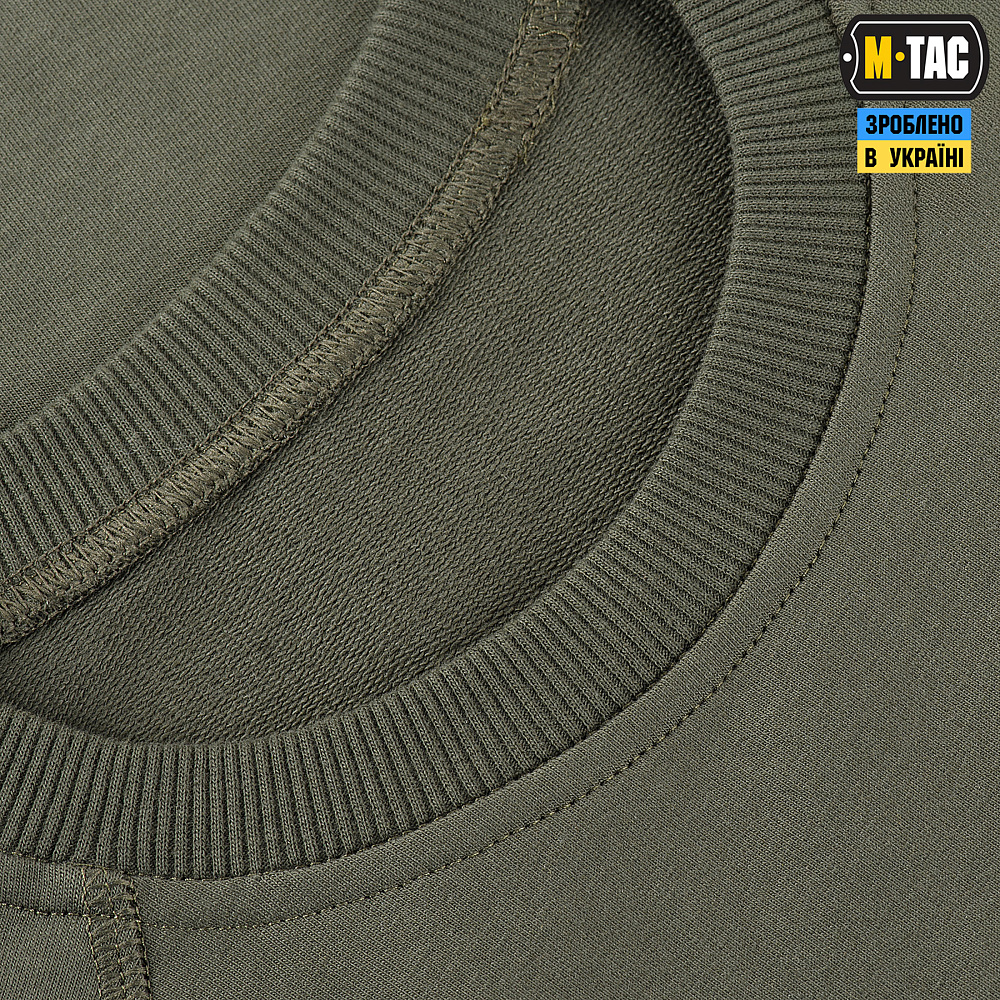 Изделие от M-TAC представляет собой трикотажный джемпер с круглым вырезом, без воротника и молнии. Реглан надевается через голову и имеет классический прямой покрой.