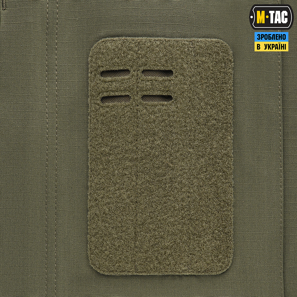 Большие velcro-панели нашиты поверх нарукавных карманов, размеры 9х14 см. В них лазером сделаны прорези под канцелярские принадлежности (ручки и пр.) и мелкое снаряжение (например, фонарик).
