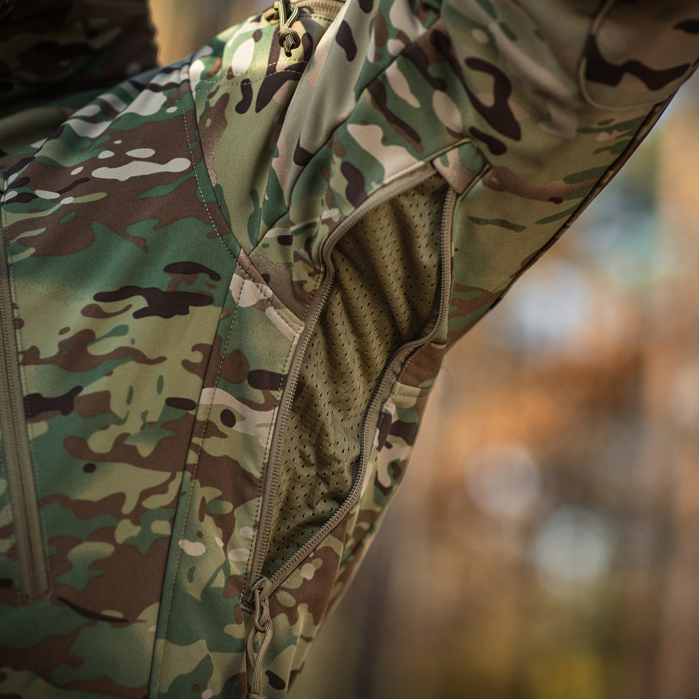 Инновационный технологичный материал, из которого изготовлена данная модель, заслуживает особого внимания. Soft Shell состоит из нескольких слоёв, которые соединены друг с другом путём наслаивания. Первый (наружный) слой - прочная, стойкая к истиранию и нагрузкам ткань. Одна из основных функций наружного слоя — защитить внутренний слой (непосредственно мембрану) от повреждений, заломов и преждевременного износа. Внутренний слой – мембрана. И последний (нижний) слой – приятный к телу микрофлис, который прекрасно удерживает тепло и обеспечивает комфорт.