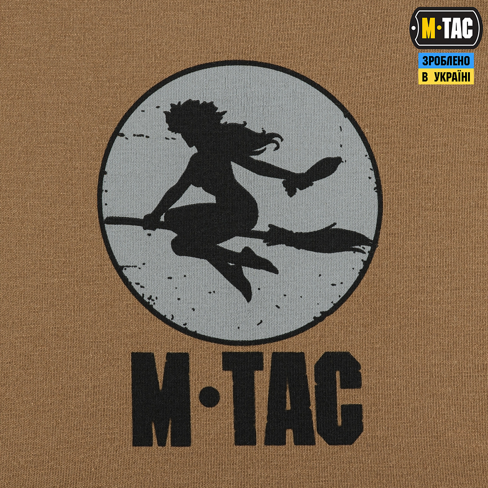 На принте изображена одна из самых известных представительниц украинского фольклора - ведьма. Она изменила свое привычное развлечение, обольщение мужчин, на несколько более полезное - ликвидацию оккупантов. Рядом с ней, изображён смертоносный рой украинских железных птиц, а также сова, которая издавна считается олицетворением мудрости, а сегодня - символом военной разведки. Поэтому, заручившись поддержкой природы и новейших технологий, украинская озорница готова подарить оккупантам поцелуй смерти, а также напомнить, что их судьба - только в ее руках.