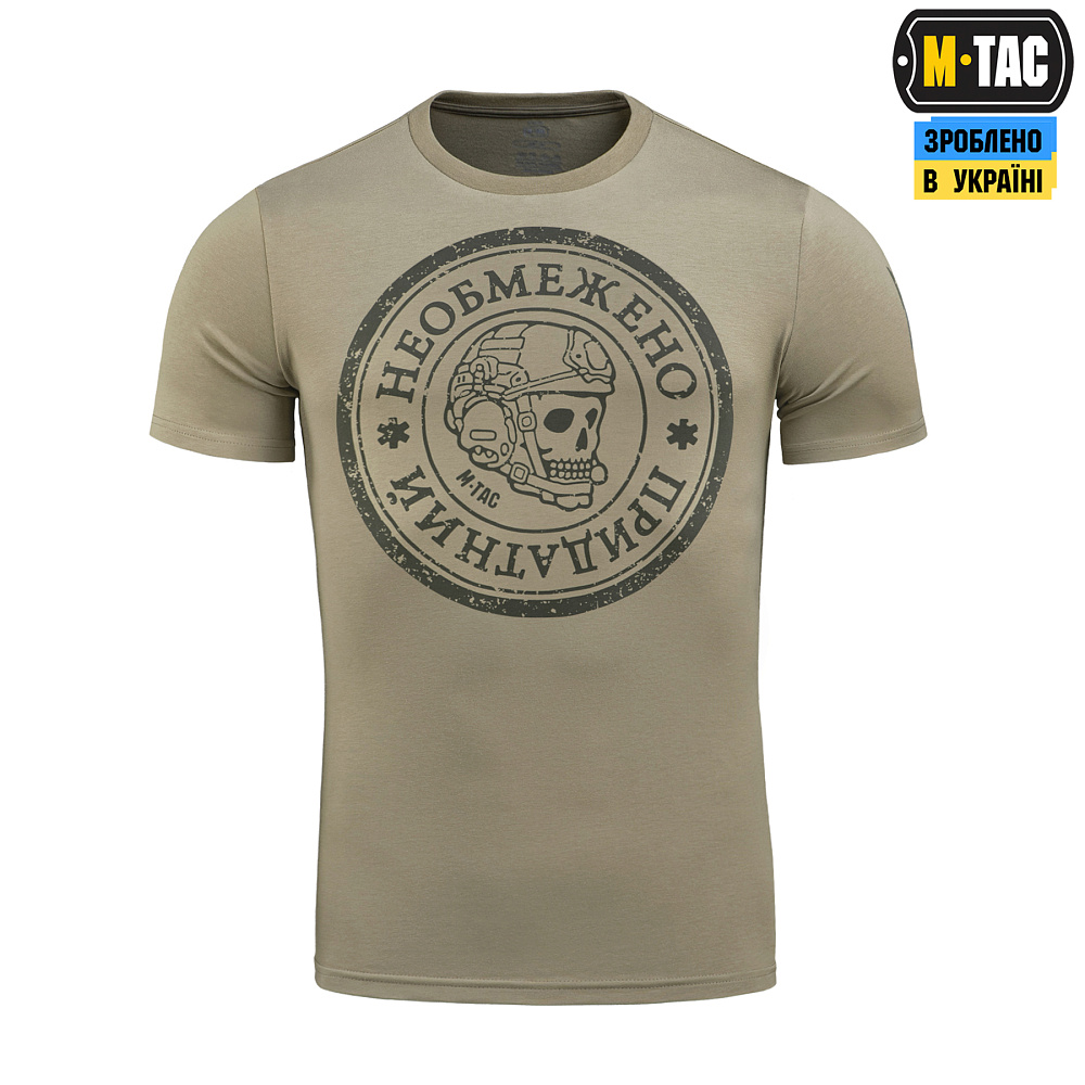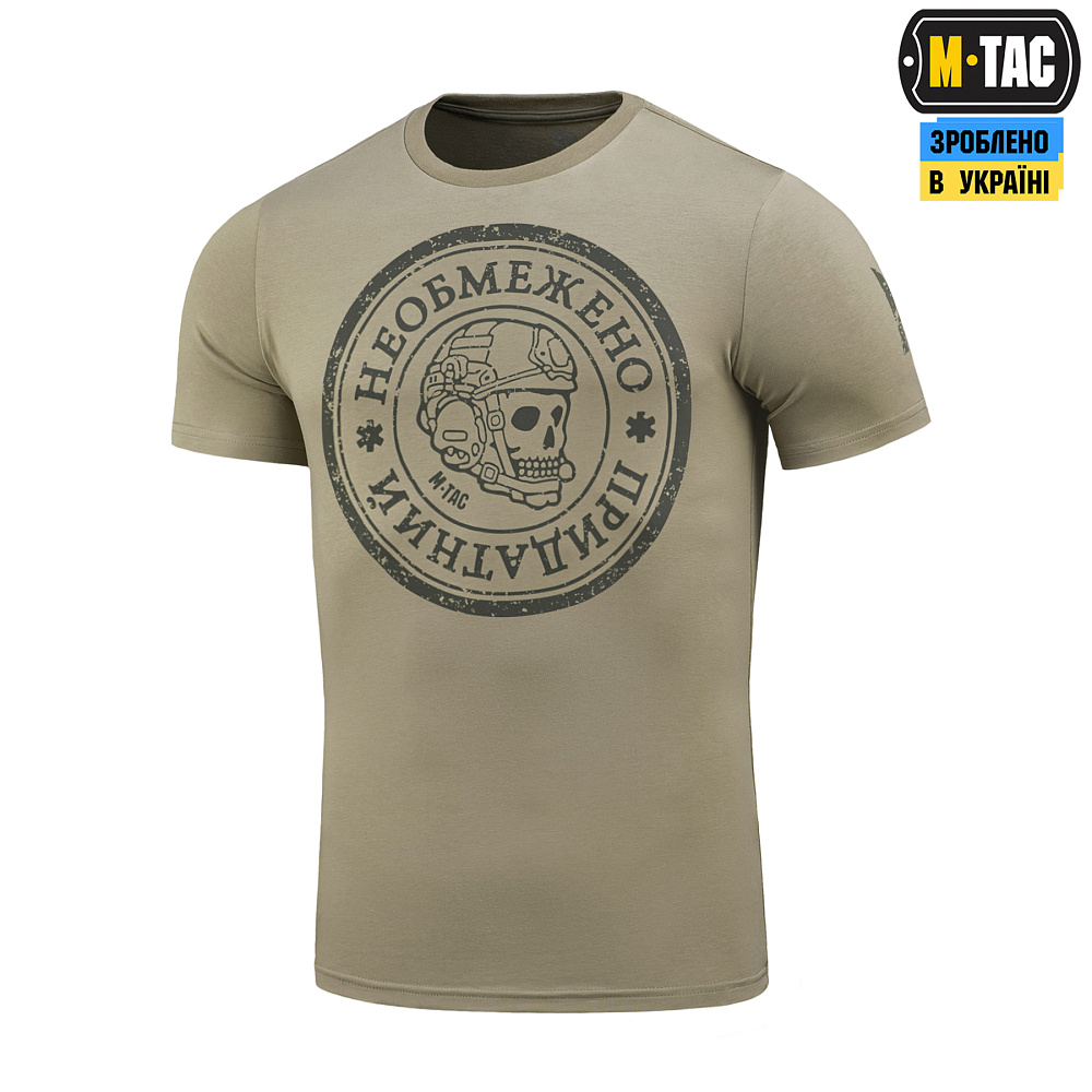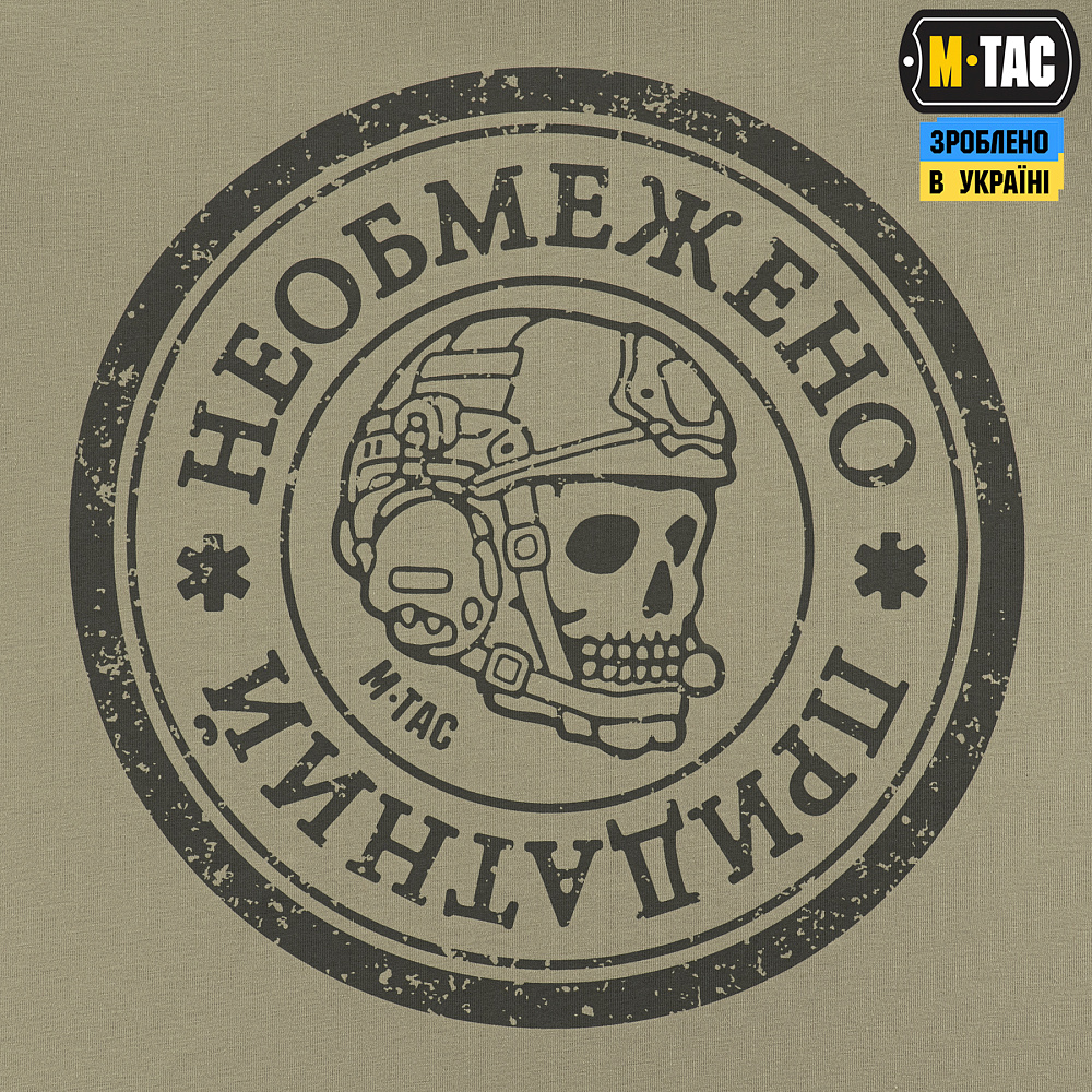 Название футболки M-Tac «Необмежено придатний» говорит само за себя. Она о тех, кто идет вперед, несмотря на боль и усталость. О тех, чья преданность делу, побратимам и сестрам сильнее любых испытаний.