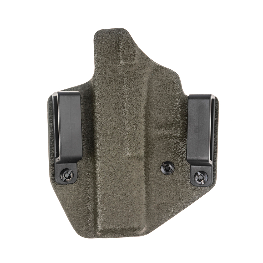 Модель Hit Factor относится к классу внешнепоясных кобур, которые, в отличие от внутрипоясных, обеспечивают физиологически более комфортное ношение пистолета. Несомненным преимуществом внешней кобуры, по сравнению с внутренней, является также возможность более быстрого извлечения пистолета в связи с облегченным доступом к нему. Кобура крепится к брючному ремню пластиковыми креплениями, переставляя которые Вы можете регулировать угол наклона кобуры на поясе. Таким образом Hit Factor надежно удерживает пистолет и не требует совершения дополнительных движений при его извлечении (например снятие фиксатора).