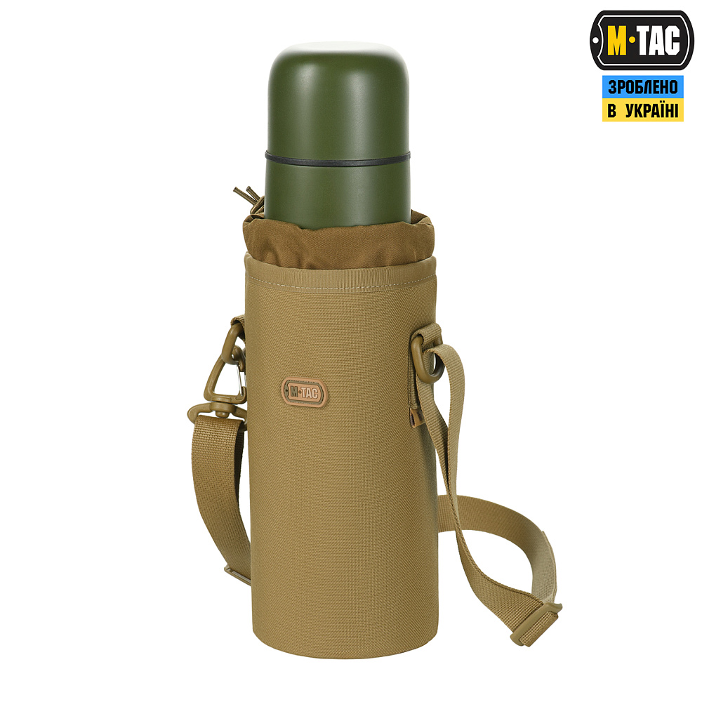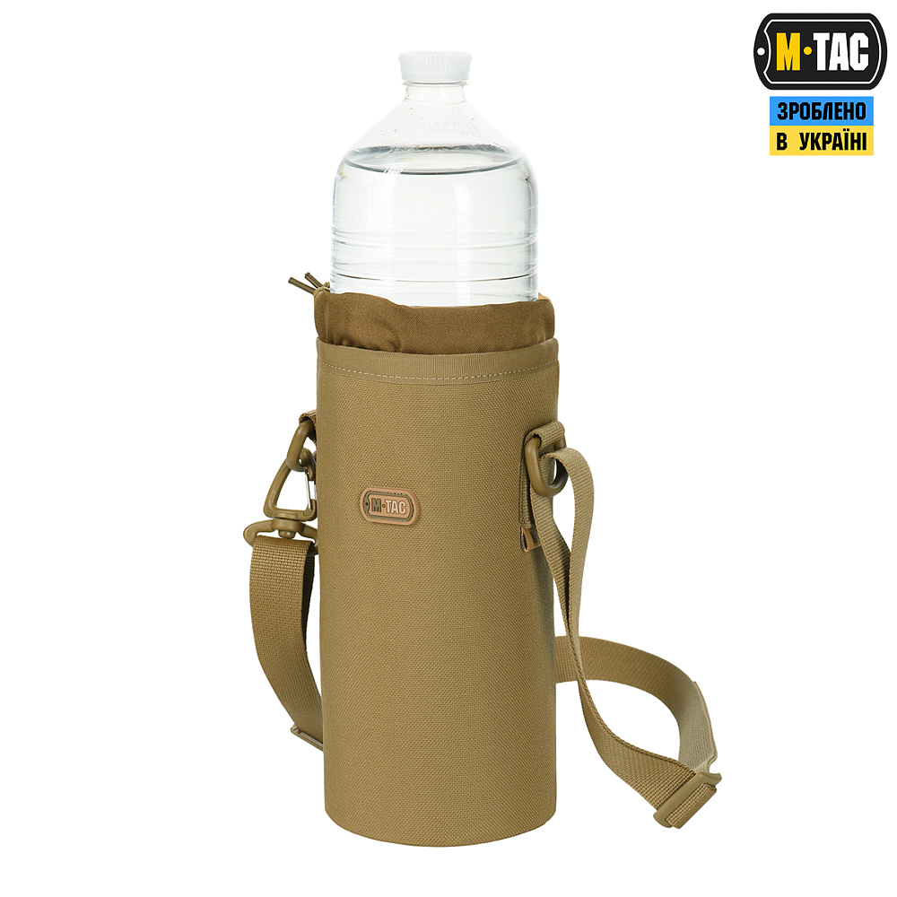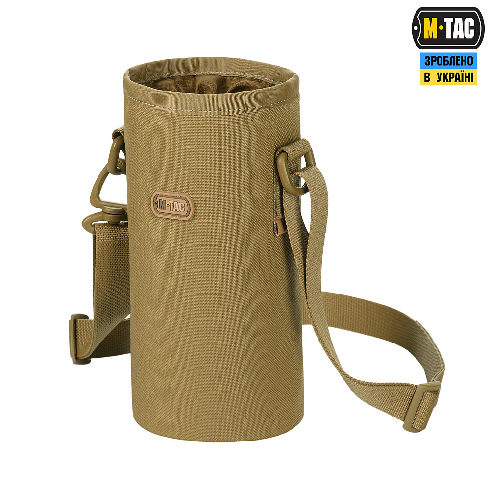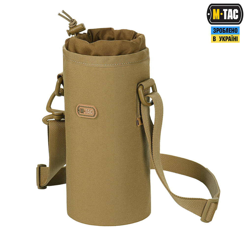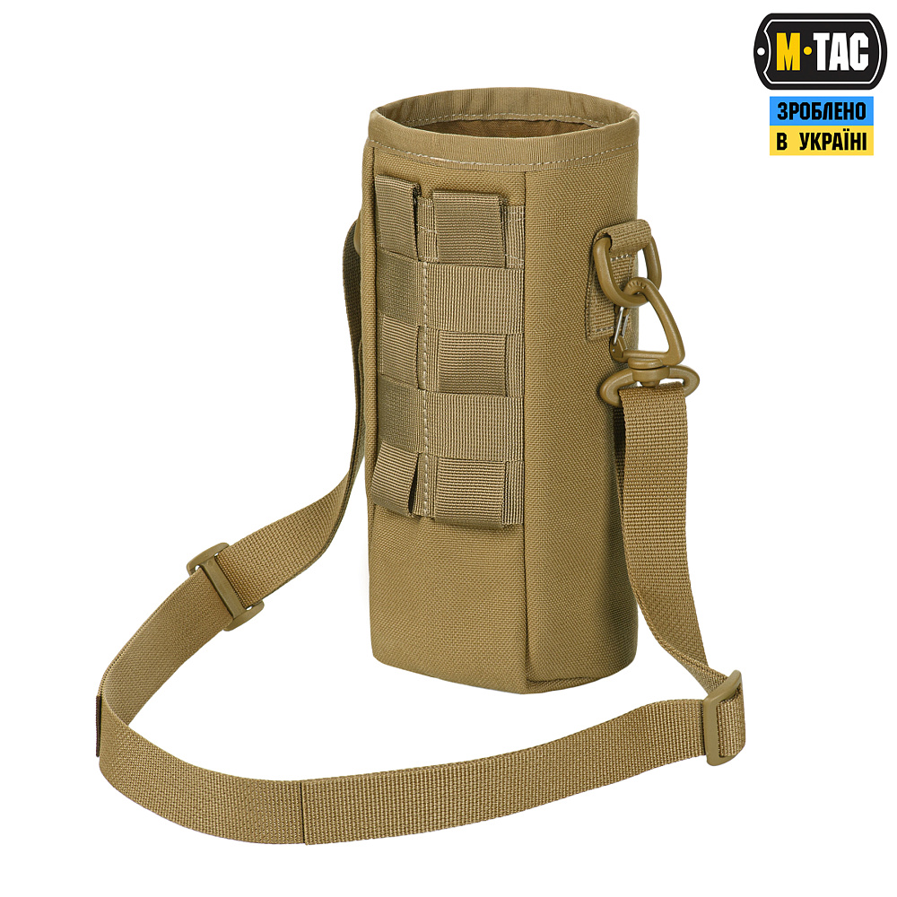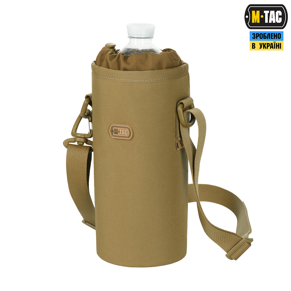 Подсумок для бутылки от бренда М-Тас – это практичный аксессуар, в который помещается современная фляга или стандартная бутылка воды емкостью 1,5 литра. Изготовлен из высококачественного материала Cordura 500D – сверхпрочной ткани, устойчивой к истиранию и высоким нагрузкам. Горловина подсумка затягивается эластичным шнуром и надежно фиксирует бутылку. Также в этой модели производитель использовал теплоизолирующий материал, который создает эффект термоса. MOLLE интерфейс позволяет крепить подсумок к снаряжению или на пояс. Также благодаря длинному ремню его можно носить через плечо.