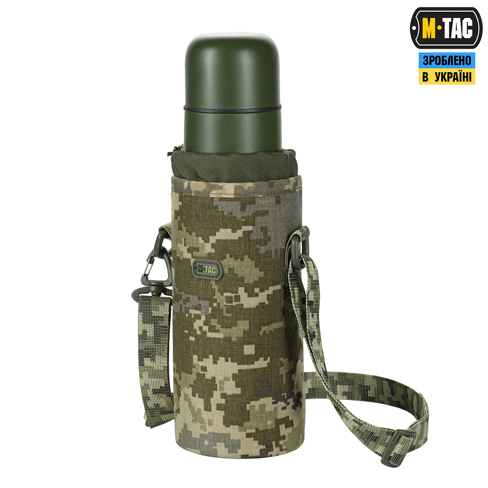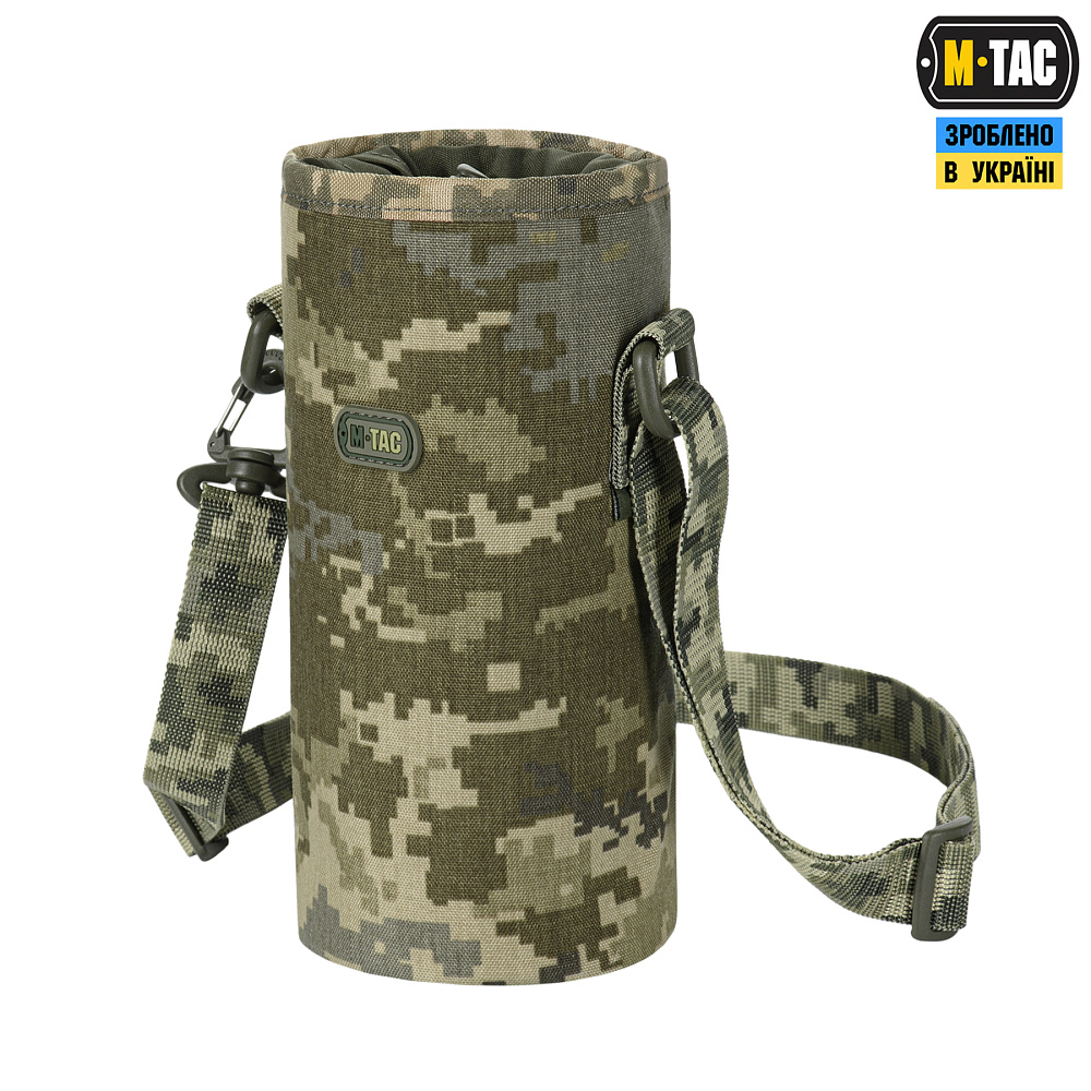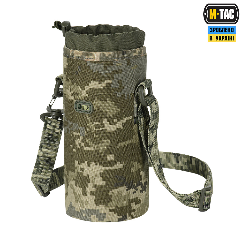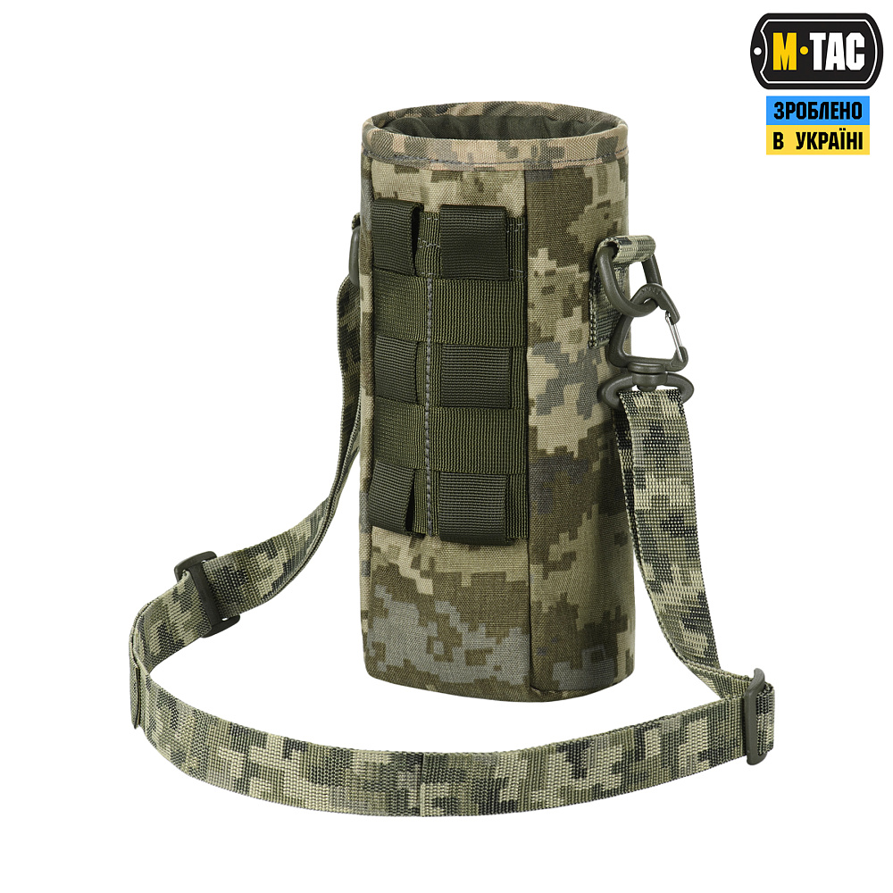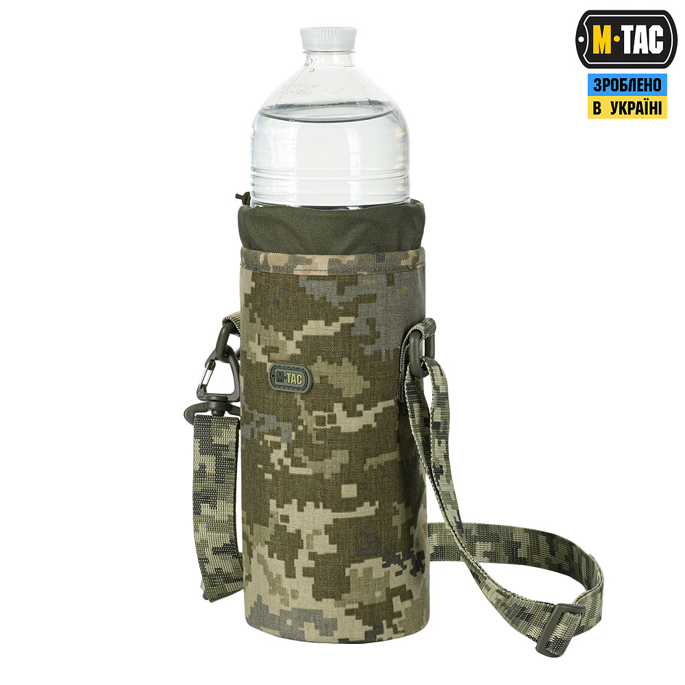 В такой ситуации на помощь придет подсумок для бутылки от отечественного производителя компании М-ТАС, снабженный ремнем для удобства переноски. Он выполнен из качественных материалов, а значит, прослужит долго.