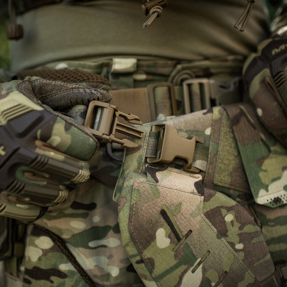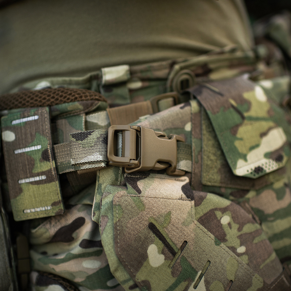 Главной особенностью данной модели является замена фастексов на боковых креплениях. В M-Tac Баллистическая защита паха Groin Protection GEN.II 1 класс защиты (FMS) используются HD NT SR Auto Cam Lock от корейской компании Woojin. Благодаря зубчатым элементам, они позволяют надежно фиксировать стропы в нужном положении, не изменяя его во время активного использования.