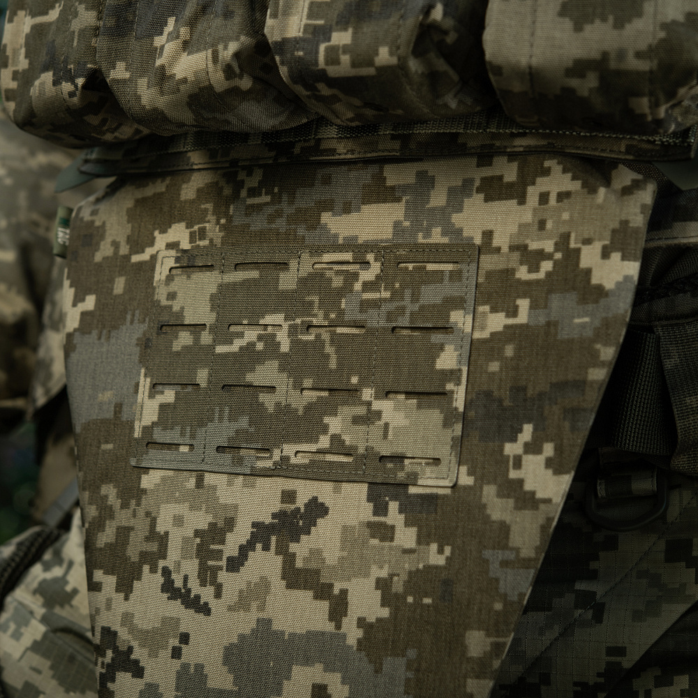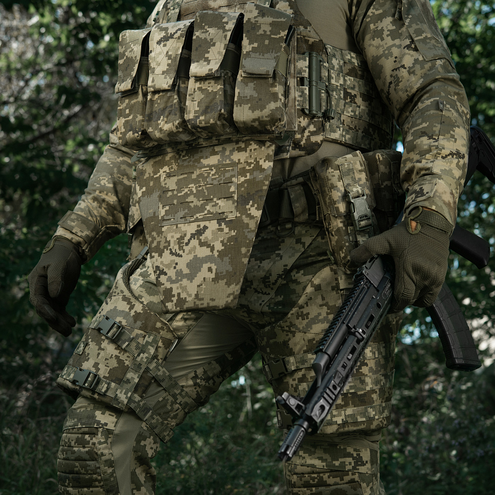 Изготовлен из Cordura 500D - сверхпрочного материала, устойчивого к истиранию и высоким нагрузкам. С обеих сторон фартука предусмотрен MOLLE интерфейс, выполненный по технологии Laser Cut. Комплектуется баллистическим пакетом 2-го класса от украинского производителя профессиональной бронезащиты BRONYX.