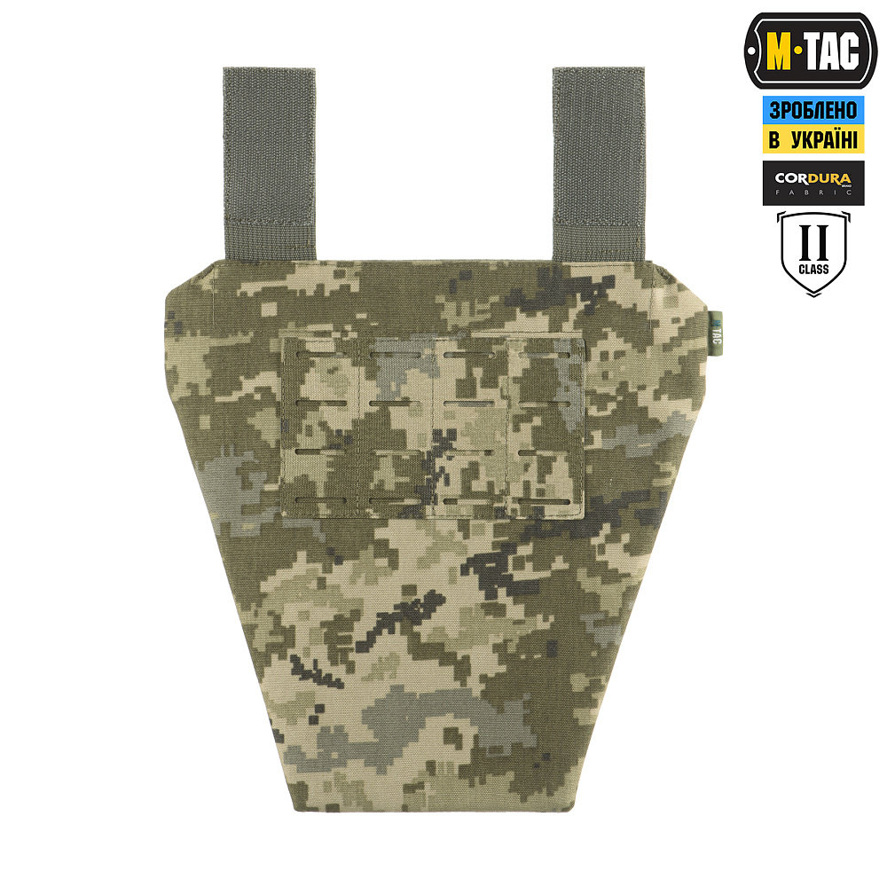 Новый M-TAC ФАРТУХ ПРОТИВОУЛАМКОВЫЙ С БАЛИСТИЧЕСКИМ ПАКЕТОМ 2 КЛАСС (BRONYX) LASER CUT служит дополнительным элементом защиты пахово-крестцовой части тела от рикошетов и осколков.