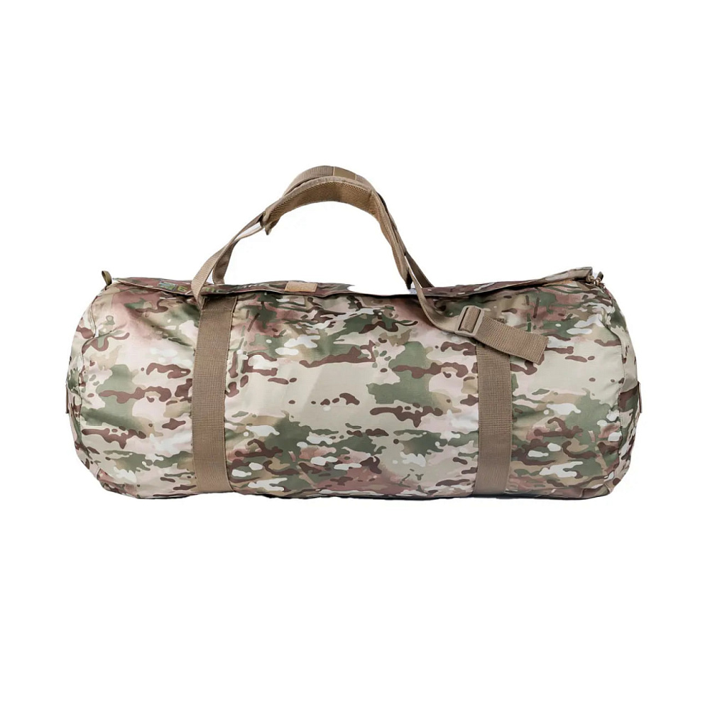 - Широкі (5 см) лямки складаються з двох шарів стропи, завдяки чому здатні витримати велике навантаження. Крім того, вони дають можливість носити баул на спині як рюкзак або в руках як звичайну сумку. За допомогою міцних двощілинних пряжок (6 см) можна відрегулювати їхню довжину до зручного рівня. А демпферні накладки (40×7,5 см), що закріплюються на стропі трьома еластичними фіксаторами, зменшують навантаження на плечі. За потреби їх можна зняти.
