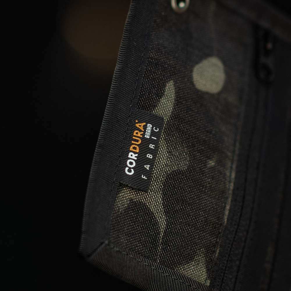 Гаманець виготовлений із Cordura 500D – міцного матеріалу, стійкого до зношування та механічних пошкоджень. Він не втрачає своїх властивостей навіть при активній щоденній експлуатації, добре переносить контакт із твердими поверхнями, не затирається на згинах та добре зберігає форму.
