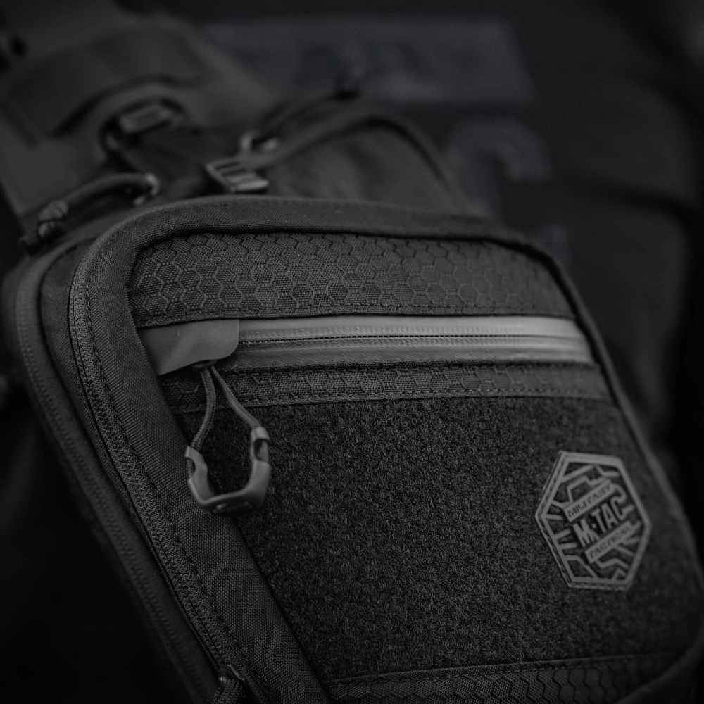 Фронтальне відділення сумки оснащене органайзером та сітчастою кишенею, які відмінно підійдуть для розміщення EDC набору. На передній частині – розміщена додаткова врізна кишеня на блискавці, а також велкро панель для кріплення ідентифікаторів та патчів.