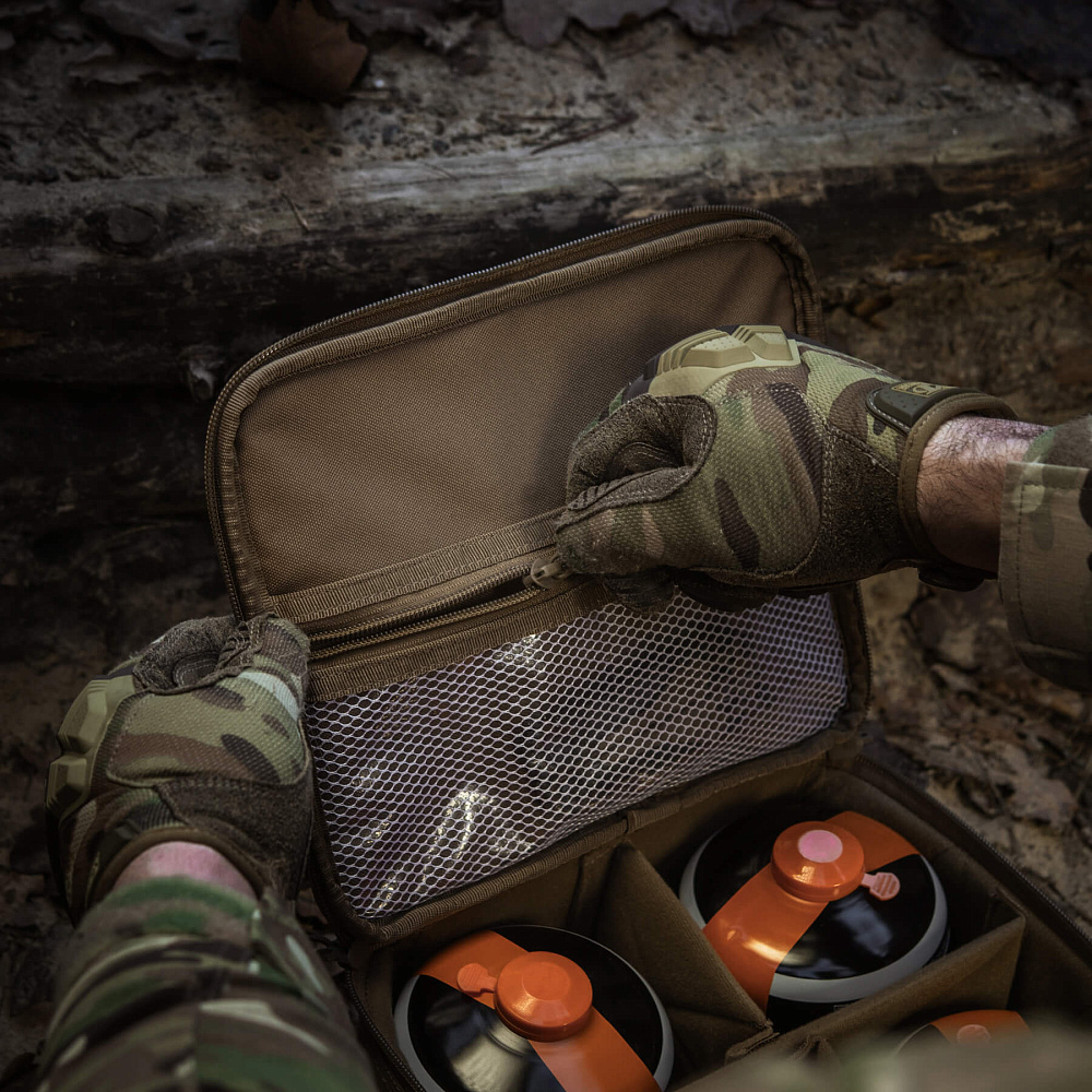 Utility Box L призначений для організації спорядження більшого об’єму – інструментів, електроніки, аксесуарів або елементів екіпірування, які потребують структурованого зберігання.