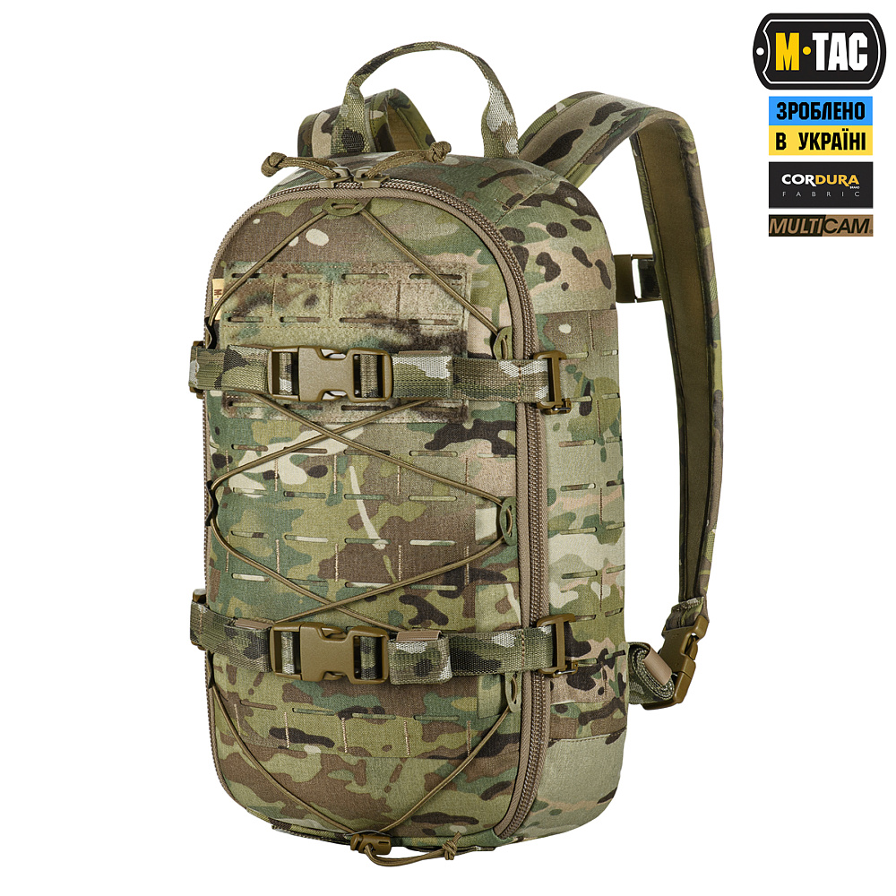 Виготовлений з Cordura 500D та Cordura 1000D (в оригінальному патерні Multicam) – якісних та зносостійких матеріалів, що забезпечать захист від механічних пошкоджень та тривалий термін експлуатації. На бічних частинах розташована MOLLE Laser Cut панель, виготовлена з Cordura Squadron та призначена для кріплення додаткового спорядження.