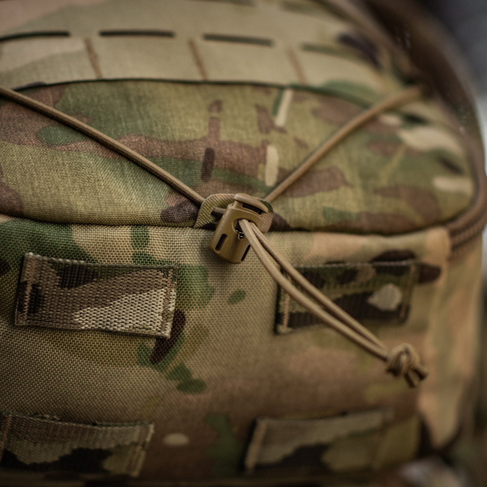 Виготовлений з Cordura 500D та Cordura 1000D (в оригінальному патерні Multicam) – якісних та зносостійких матеріалів, що забезпечують захист від механічних пошкоджень та тривалий термін експлуатації. Бічні кишені, виготовлені з сітки, призначені для розміщення пляшки з водою.