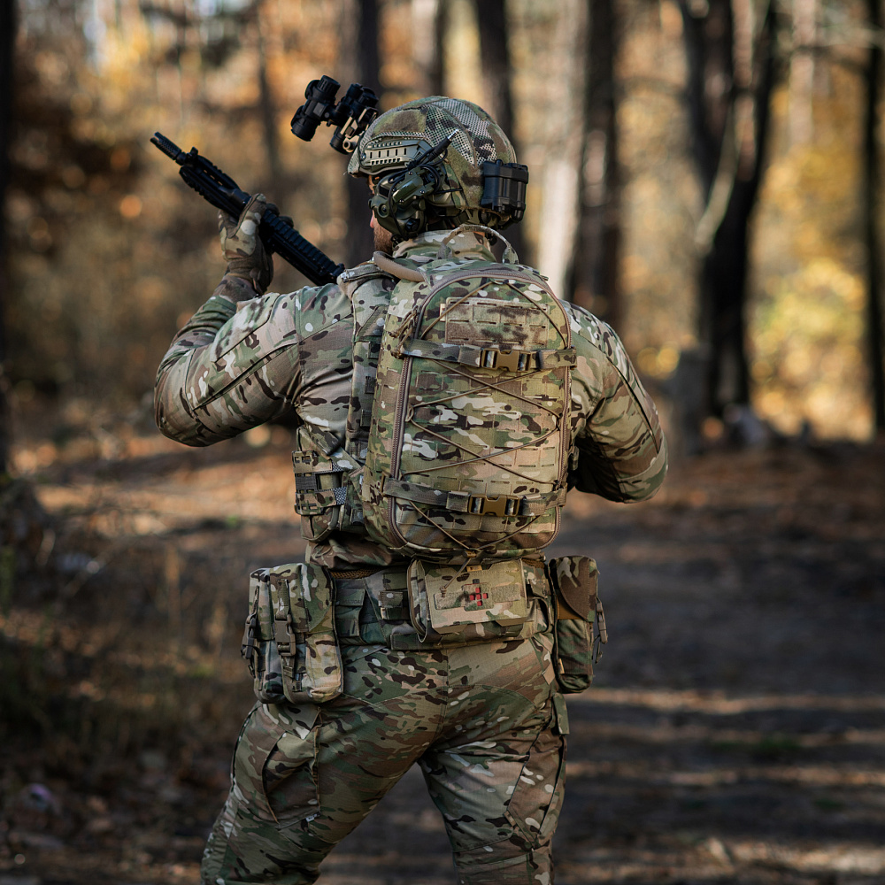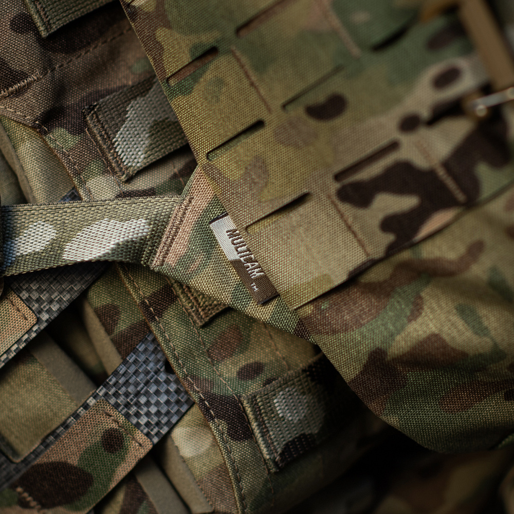 Виготовлений з Cordura 500D та Cordura 1000D (в оригінальному патерні Multicam) – якісних та зносостійких матеріалів, що забезпечать захист від механічних пошкоджень та тривалий термін експлуатації. На бічних частинах розташована MOLLE Laser Cut панель, виготовлена з Cordura Squadron, призначена для кріплення додаткового спорядження.