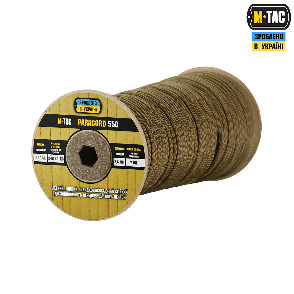 M-TAC ПАРАКОРД 550 TYPE III 100M – стане незамінним елементом спорядження як у польових умовах, так і під час активного відпочинку.