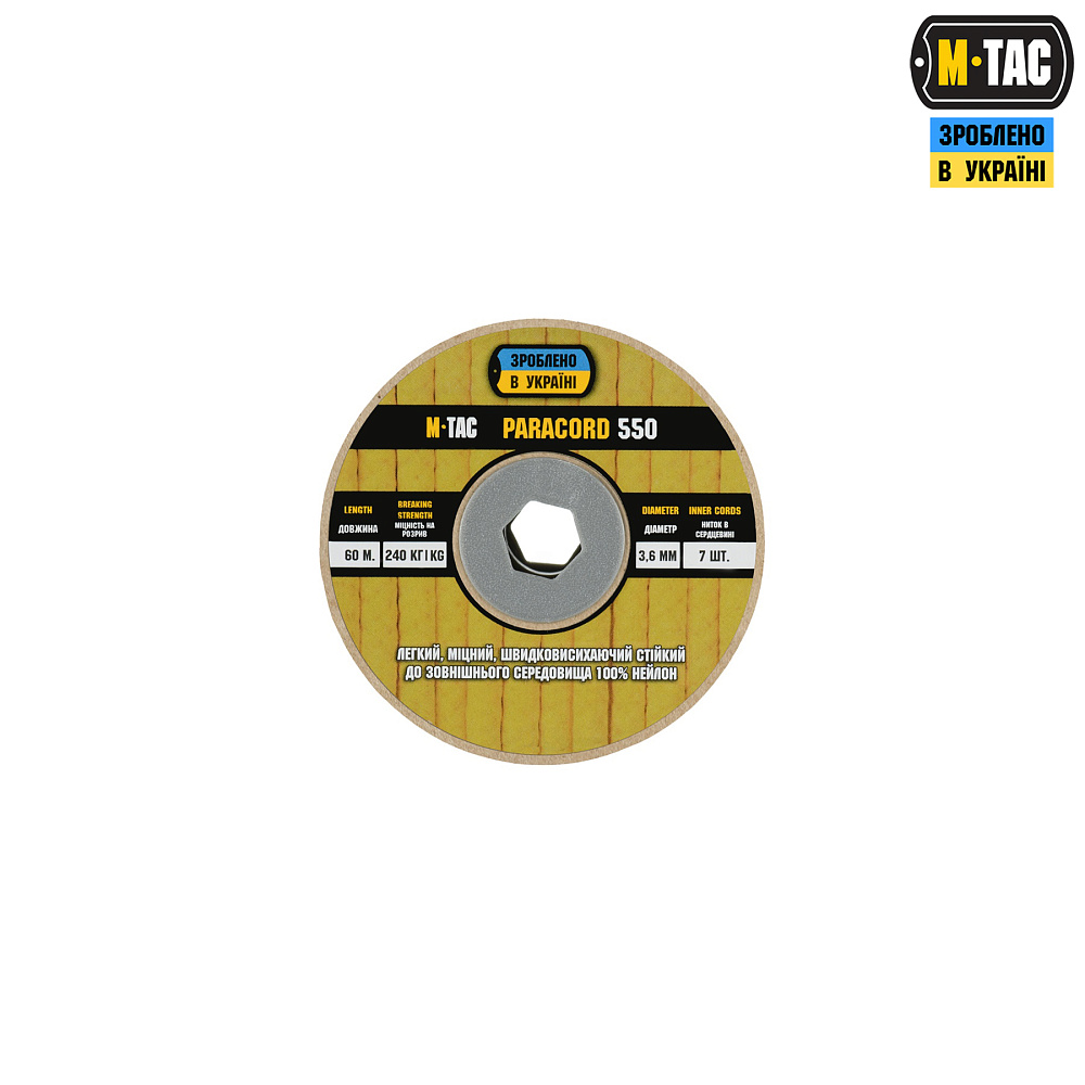 M-TAC ПАРАКОРД 550 TYPE III 60M – стане незамінним елементом спорядження як у польових умовах, так і під час активного відпочинку.