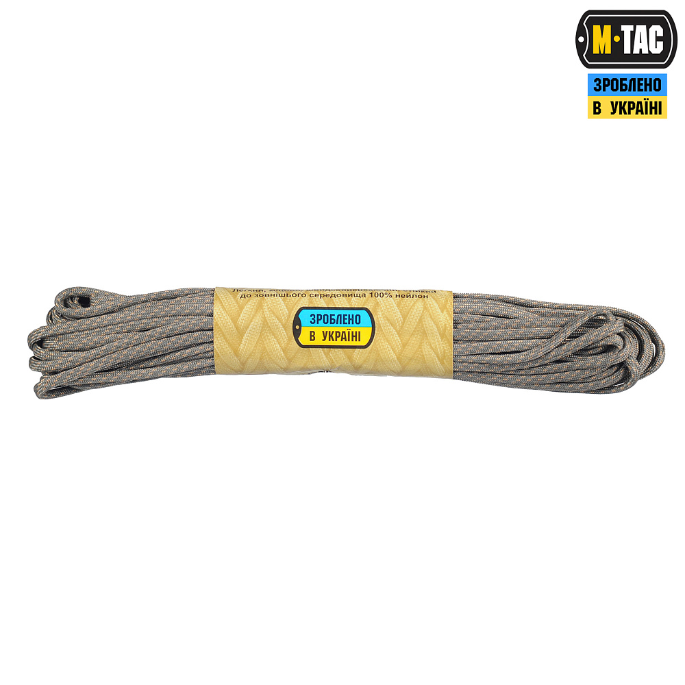 M-Tac паракорд 550 type III - це нейлоновий шнур, що складається з зовнішнього обплетення (велика кількість переплетених волокон) і сердечника (кілька нейлонових ниток, переплетених між собою), що забезпечують його міцність і невелику вагу.