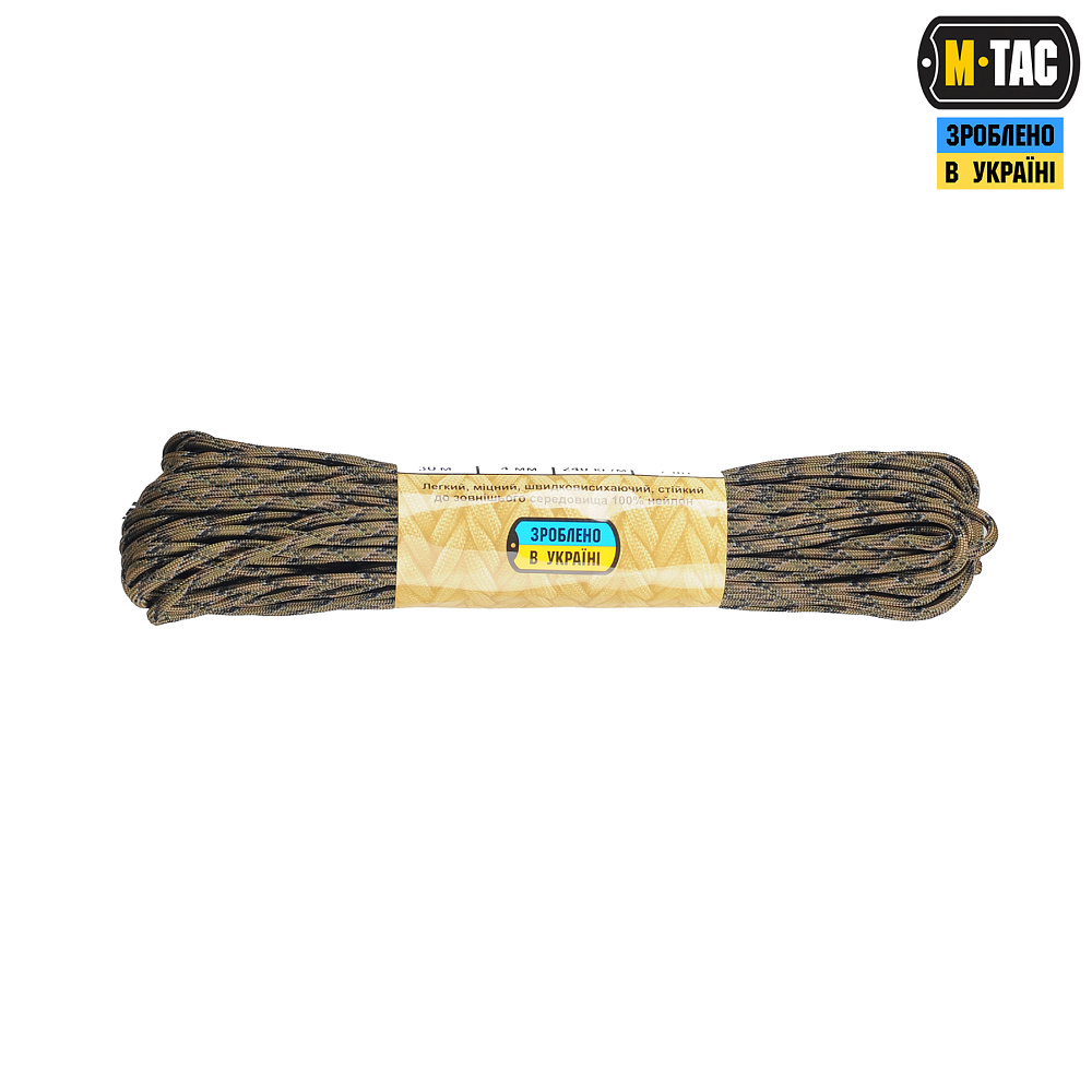 M-Tac паракорд 550 type III – це нейлоновий шнур, що складається із зовнішнього обплетення і сердечника, які забезпечують його міцність і невелику вагу.
