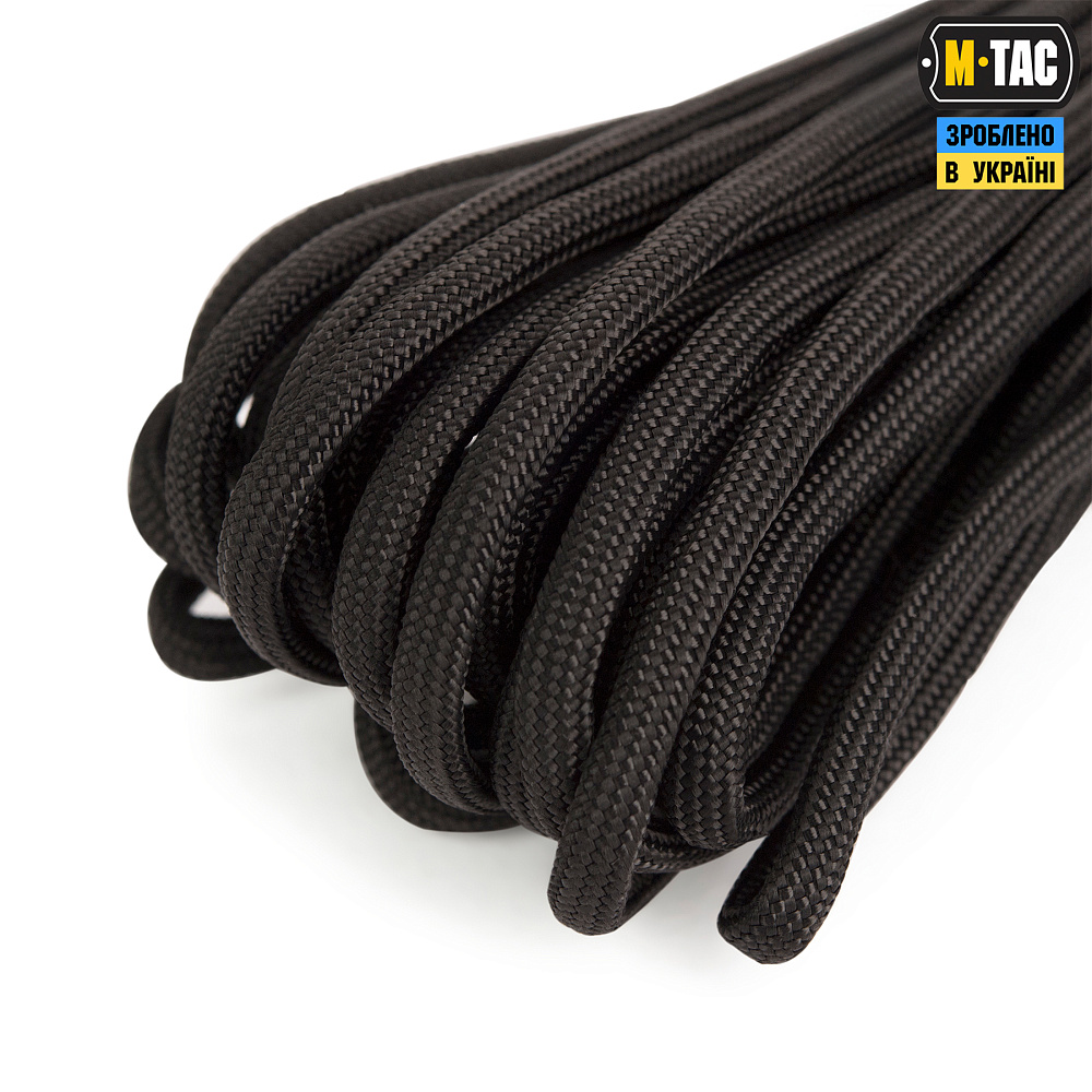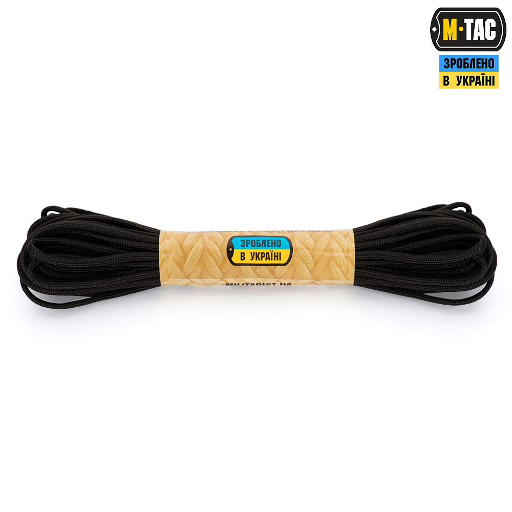 M-Tac паракорд 550 type III - це нейлоновий шнур, що складається з зовнішнього обплетення (велика кількість переплетених волокон) і сердечника (кілька нейлонових ниток, переплетених між собою), що забезпечують його міцність і невелику вагу.