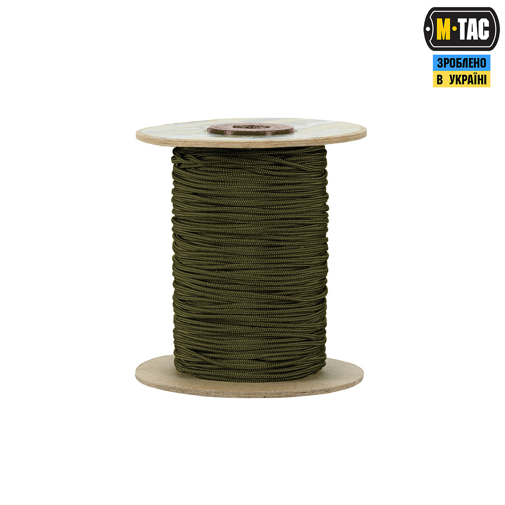Виготовлений зі 100% нейлону – легкого та водночас зносостійкого матеріалу. Складається із зовнішнього обплетення (зі зміцненою структурою) та осердя, які в комбінації забезпечують високу міцність на розрив та невелику вагу. Для зручності використання, паракорд розміщено на котушці з пресованого картону.