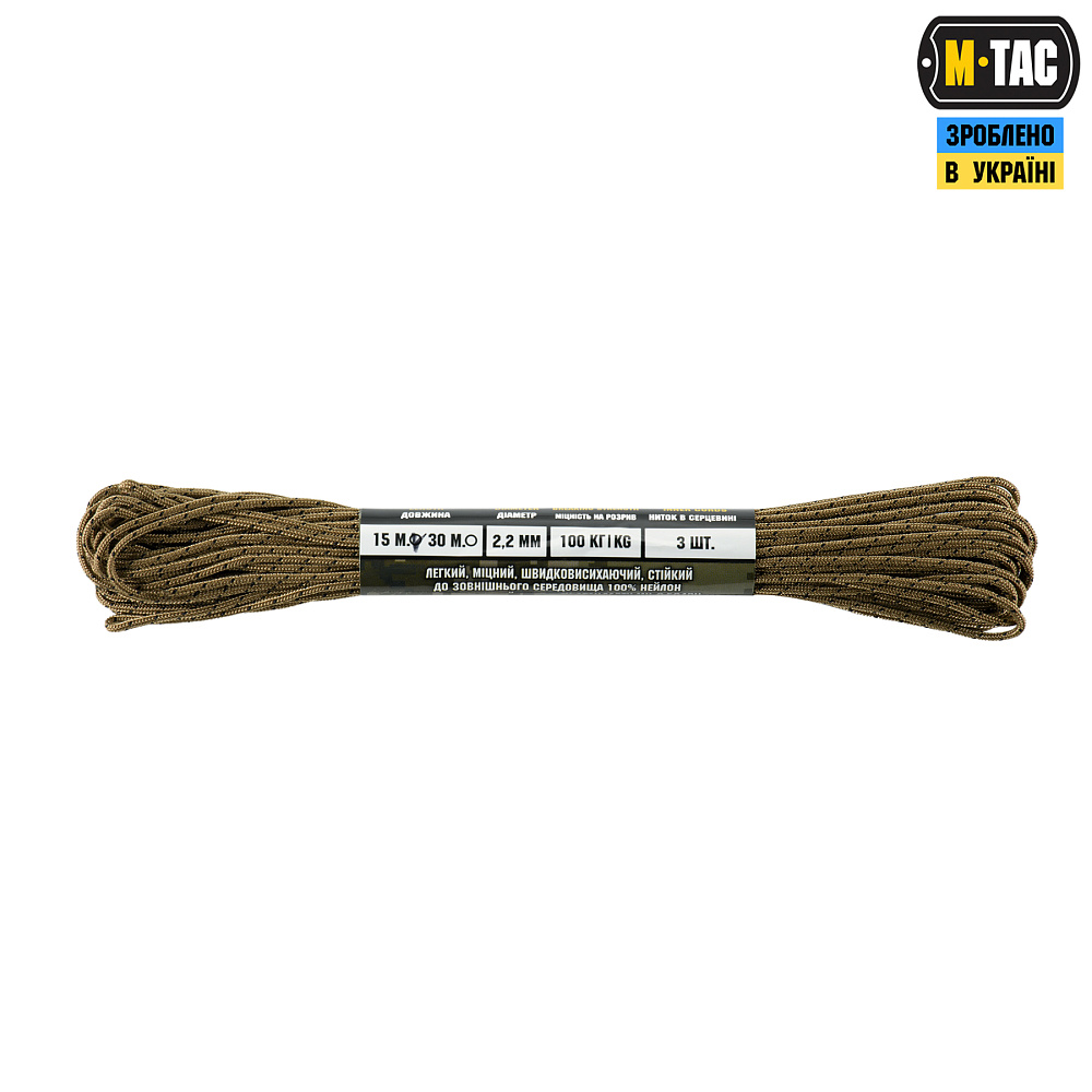 M-TAC ПАРАКОРД MINICORD MIL-SPEC 15M – стане незамінним елементом спорядження як у польових умовах, так і під час активного відпочинку.