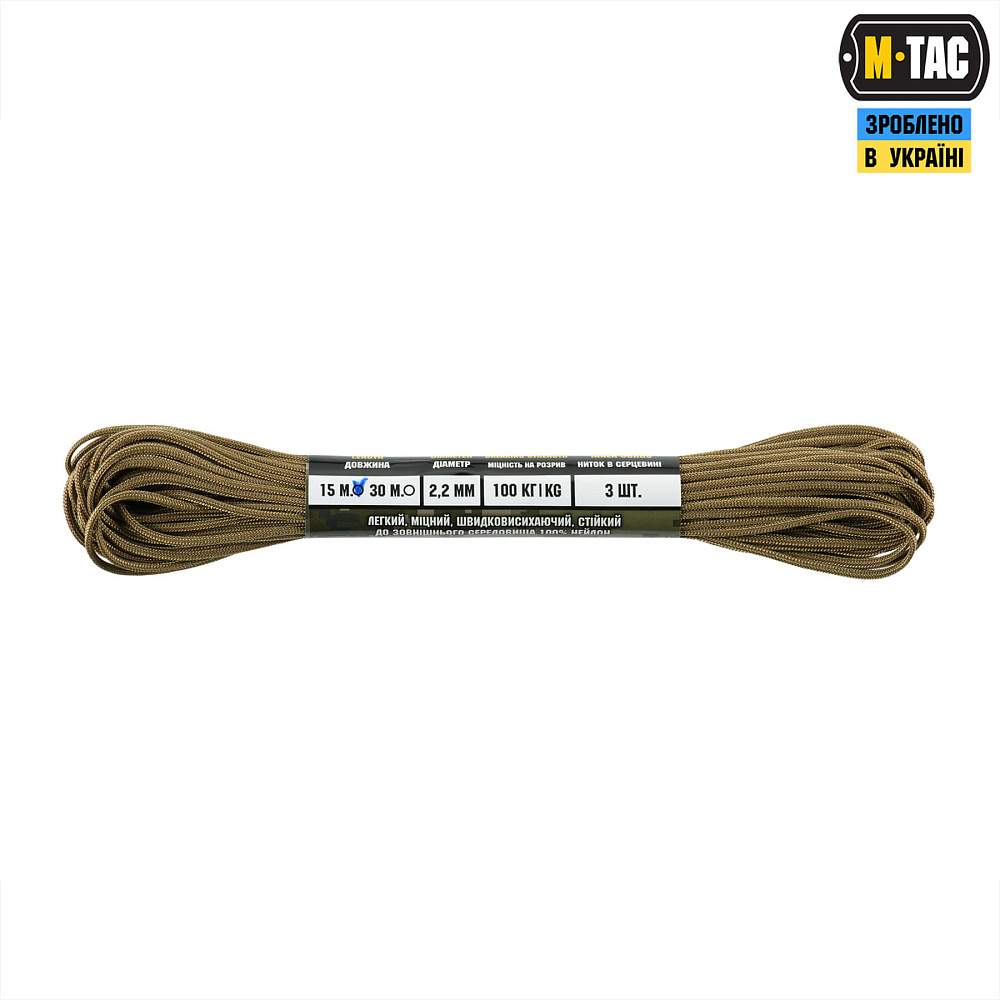 M-TAC ПАРАКОРД MINICORD MIL-SPEC 15M – стане незамінним елементом спорядження як у польових умовах, так і під час активного відпочинку.