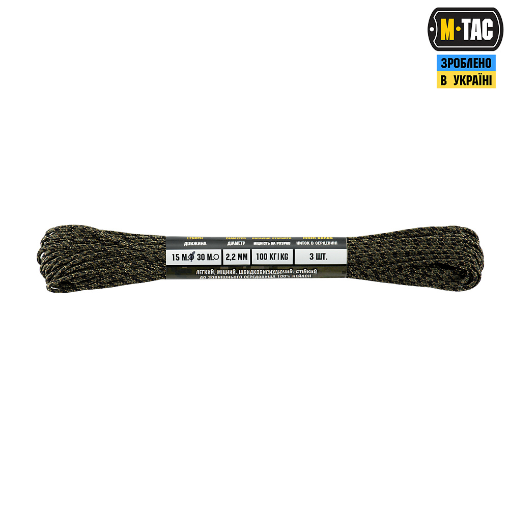 M-TAC ПАРАКОРД MINICORD MIL-SPEC 15M – стане незамінним елементом спорядження як у польових умовах, так і під час активного відпочинку.