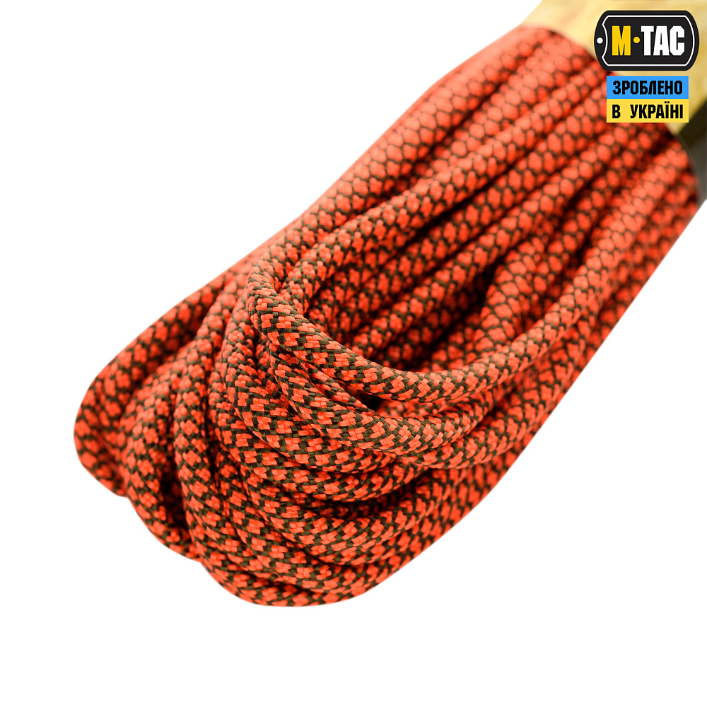 M-Tac паракорд Survival - це нейлоновий шнур, що складається з зовнішнього обплетення (велика кількість переплетених волокон) і сердечника (кілька нейлонових ниток, переплетених між собою), що забезпечують його міцність і невелику вагу. Начинка моделі SURVIVAL це 7 поліамідних ниток (550-paracord) а також джут і плетений рибальський шнур.