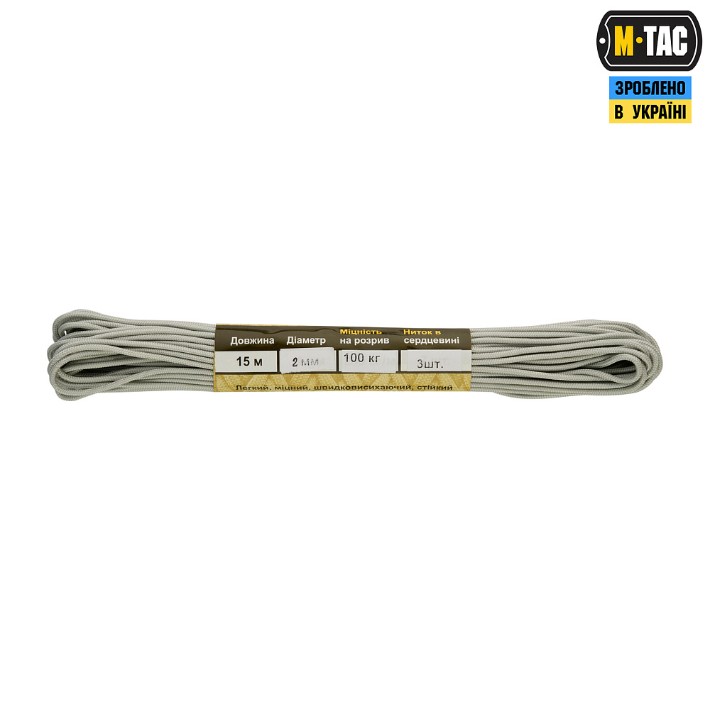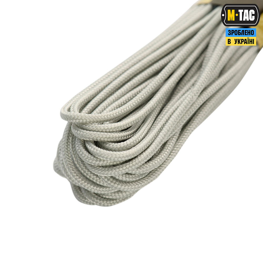 M-Tac паракорд 550 type III - це нейлоновий шнур, що складається з зовнішнього обплетення (велика кількість переплетених волокон) і сердечника (кілька нейлонових ниток, переплетених між собою), що забезпечує його міцність і невелику вагу.