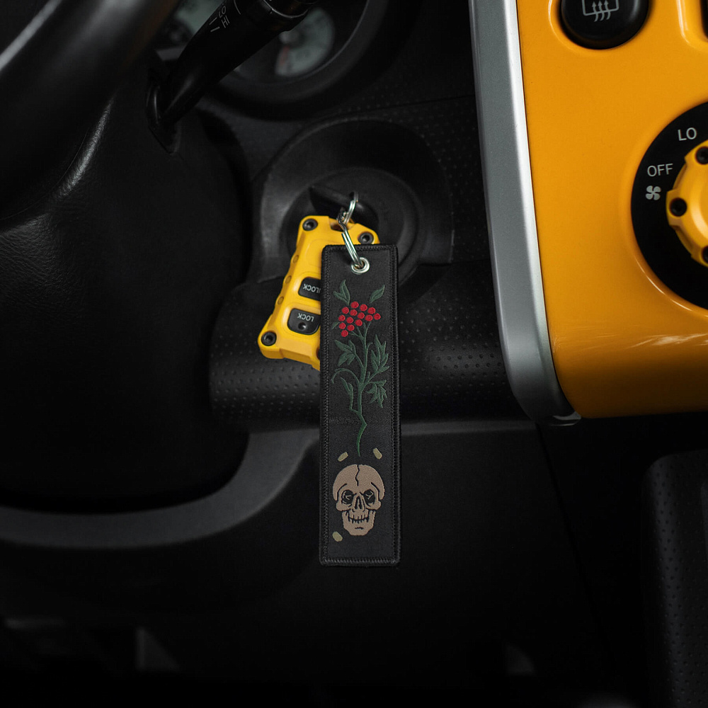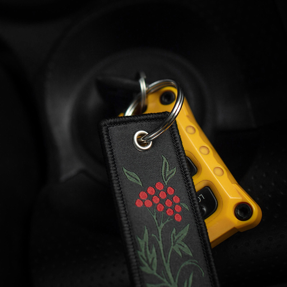 Серед усього розмаїття брелоків культовим став “Remove Before Flight” – елемент, що прийшов до нас з авіації та швидко здобув популярність. Яскраво-червоні стрічки з таким написом використовувалися на літаках як попереджувальні маркери, які необхідно було зняти перед вильотом. Згодом, зменшена версія цієї сигнальної стрічки перетворилася на впізнаваний аксесуар.