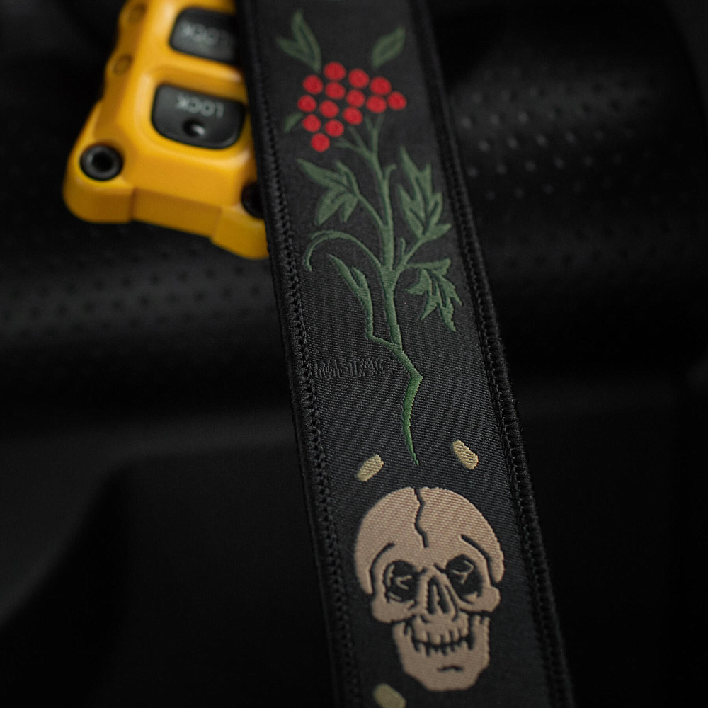 На М-Тас брелоку Череп/Калина зображено череп ворога з якого проростає калина – один із символів української державності. Він зручно кріпиться до ключів, сумки, рюкзака тощо за допомогою металевого кільця.