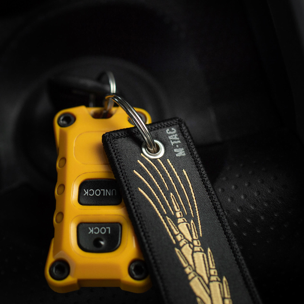 Брелок кріпиться до ключів, сумки, рюкзака тощо за допомогою металевого кільця. Виготовлений із жакарду – щільного та зносостійкого матеріалу. Малюнок виконаний методом вплітання кольорових ниток у структуру матеріалу, що забезпечує його чіткість та довговічність.